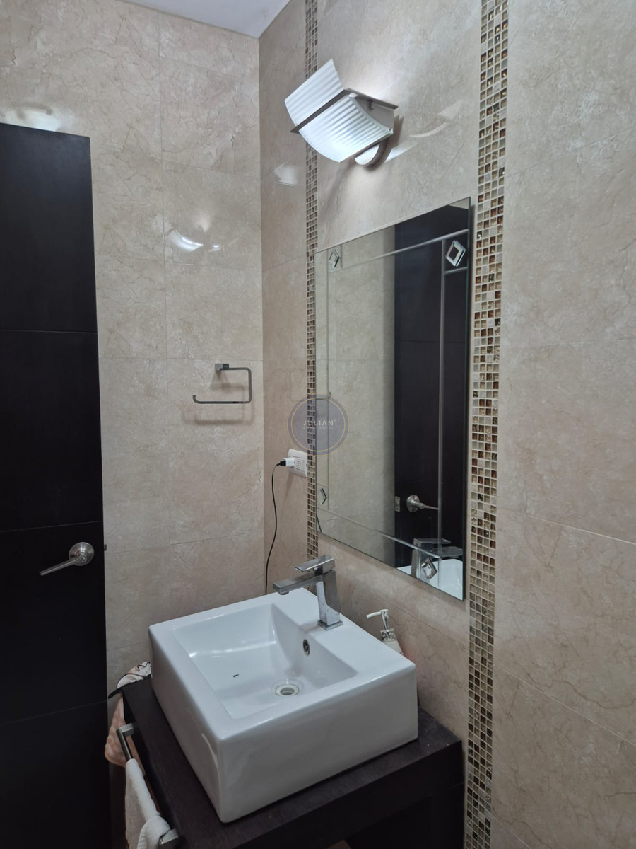 Planta baja, cochera para dos autos, sala, espejo, comedor de 6 sillas, cocina integral con estufa y campana, refrigerador,, medio baño, pasillo y Patio, lavanderia con lavadora, secadora,.