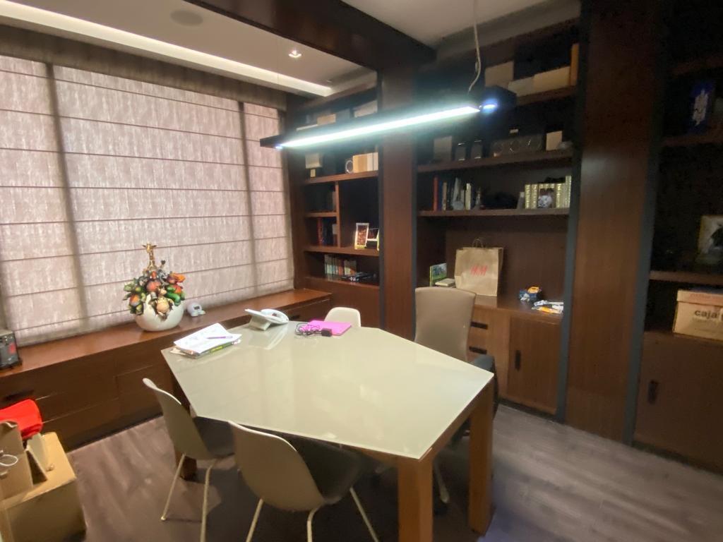 A UN COSTADO, SE ENCUENTRA UNA OFICINA PRIVADA Y LA MODERNA COCINA CON ISLA, COMPLETAMENTE INTEGRADA AL JARDÍN, IDEAL PARA DISFRUTAR REUNIONES Y MOMENTOS FAMILIARES.