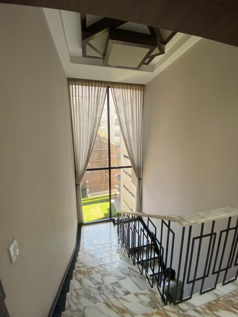 UNA IMPONENTE ESCALERA ILUMINADA POR UN GRAN VENTANAL CONDUCE A LA PLANTA ALTA, DONDE UN PASILLO LUMINOSO Y ELEGANTE DISTRIBUYE EL ACCESO A LAS CUATRO RECÁMARAS, TODAS CON BAÑO Y WALK-IN CLOSET.