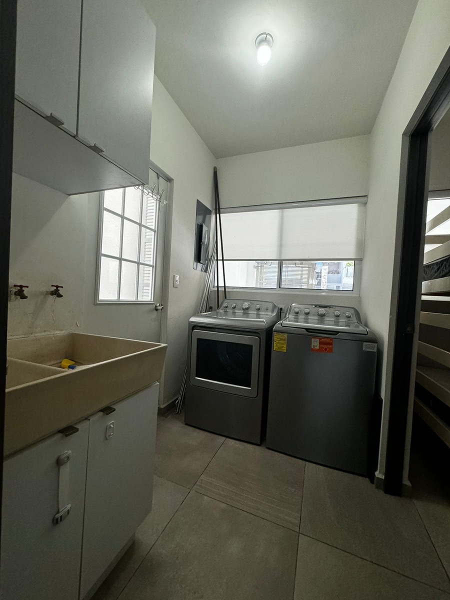 Cuenta con sala, comedor, cocina, lavandería, cuarto de servicio con baño completo. También cuenta con portón eléctrico.