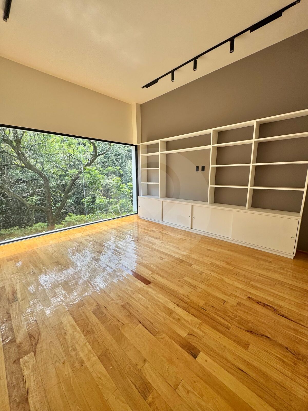 No nível de um dos jardins, você encontrará um amplo salão com banheiro completo que poderá usar conforme suas necessidades, seja para uma suíte independente, escritório ou área de festas para receber seus convidados.