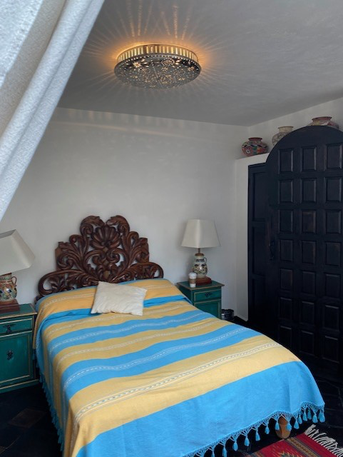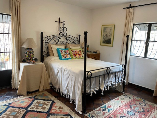 No primeiro andar, duas iluminadas suítes de estilo mexicano, cada uma com banheiro completo e um mágico canto de touradas.