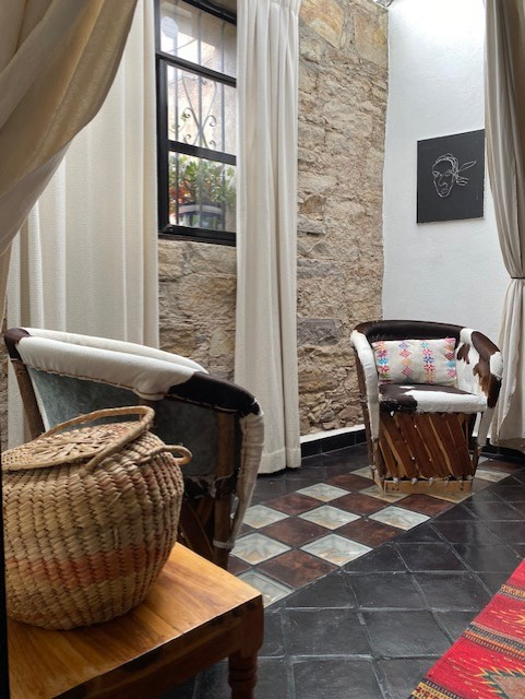 On the second level we find a second fully equipped kitchen, a beautiful room and the magnificent terrace with a quarry fountain, in this space you can enjoy the best view of the Guanajuato's University, the Basilica and the Pipila.