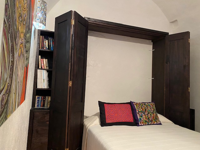 Bajando al sótano tenemos una biblioteca, acondicionada con cama plegable al muro.
