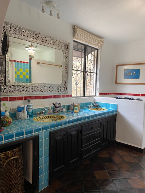 On the first floor, two bright Mexican-style bedrooms, each with a full bathroom and a magical bullfighting corner.