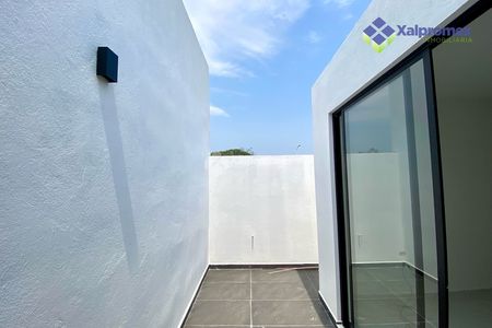 estancia de sala, comedor, cocina integral con barra de servicio, cuarto de lavado, medio baño en planta baja, garaje para dos autos techado, tanque estacionario, cisterna de 5mil lts, tanque estacionario, tinaco. Terreno 105m², construcción 196m². Videovigilancia en el fraccionamiento, palapa y área de juegos.