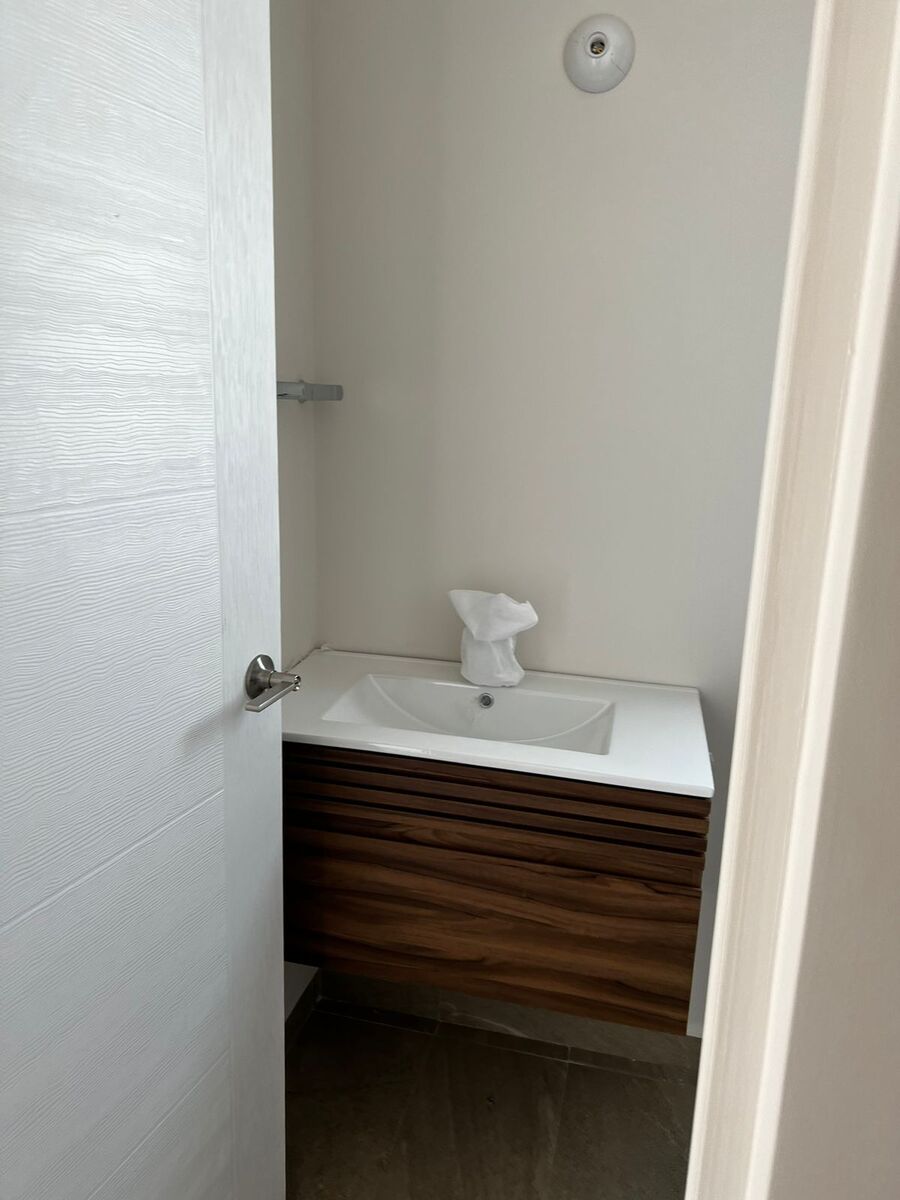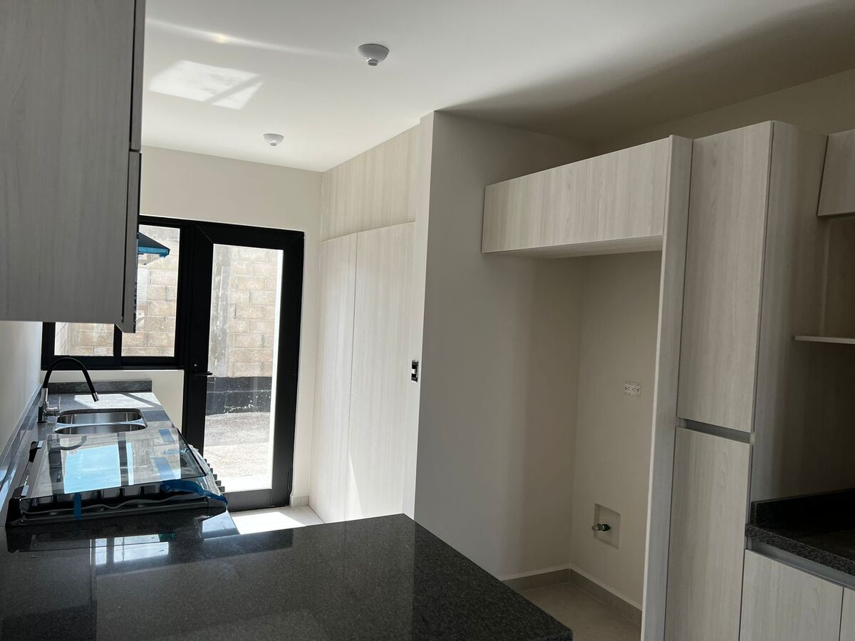Planta Baja: Sala, comedor, cocina equipada , campana y tarja de acero inoxidable, alacenas, estudio o cuarta recámara, área de lavado, ½ baño y jardín posterior y dos cajones de estacionamiento.
