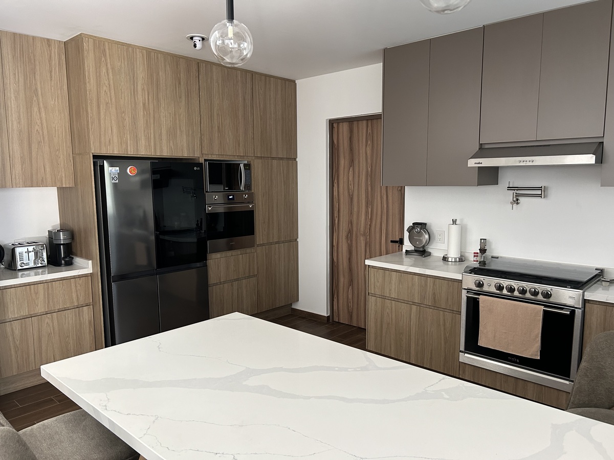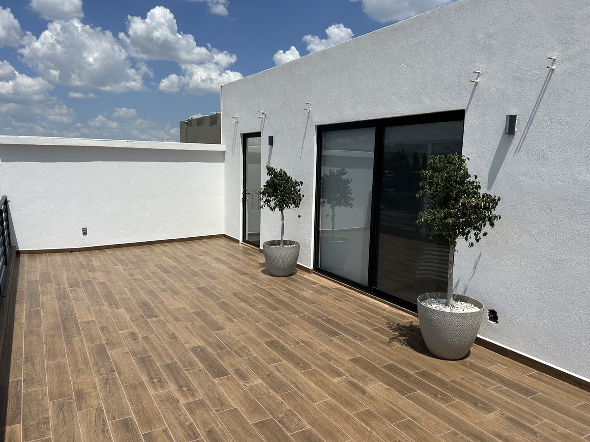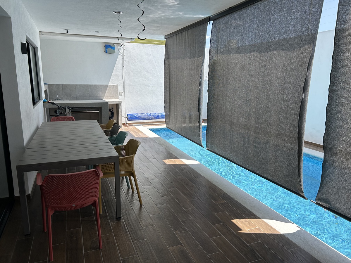 Amplia terraza con barra y cocineta, ideal para convivencias familiares o sociales.