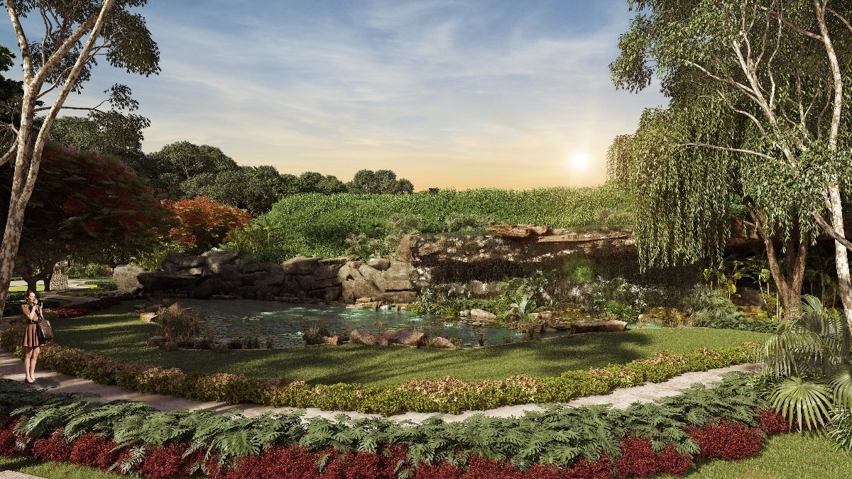Tudo isso cercado por extensas áreas verdes com design paisagístico.