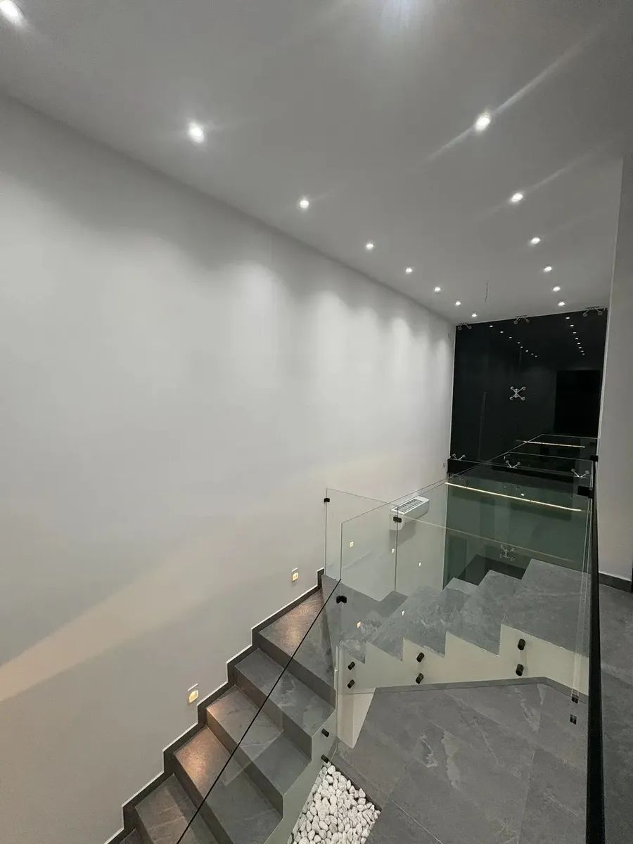 A casa conta com uma entrada em vidro de pé direito duplo e na sala, dando um toque fascinante de luxo e luz.