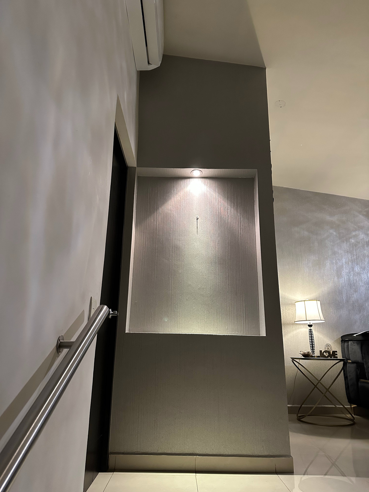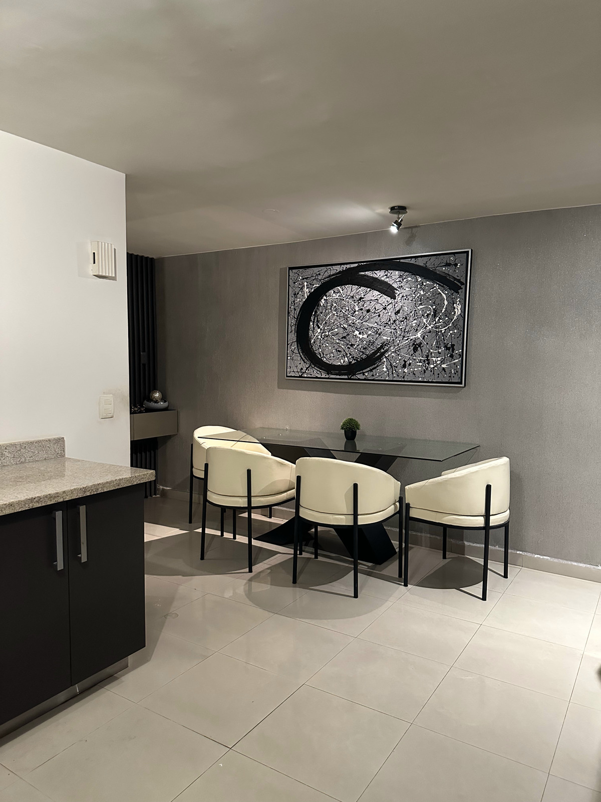 Equipada con minisplits frío /calor en sala , estancia y recámara principal. Canceles de vidrio templado, persianas y cortinas en todas las áreas, cámaras de vigilancia, preparación de alarma.