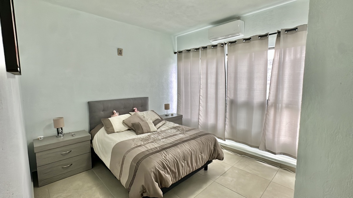 La seguridad es una prioridad en esta propiedad, ya que cuenta con una garita de entrada y vigilancia las 24 horas del día. También ofrece una piscina para refrescarse durante los días calurosos y un estacionamiento para visitantes para mayor comodidad.