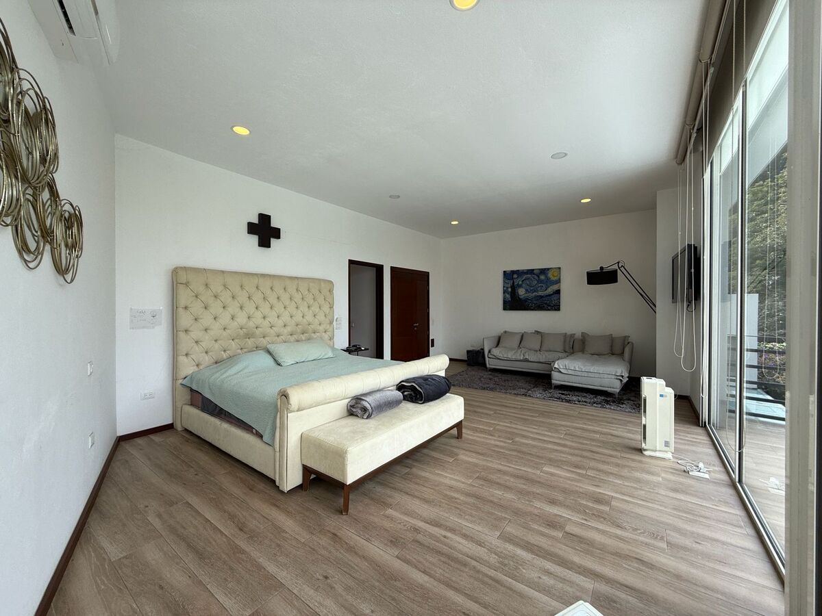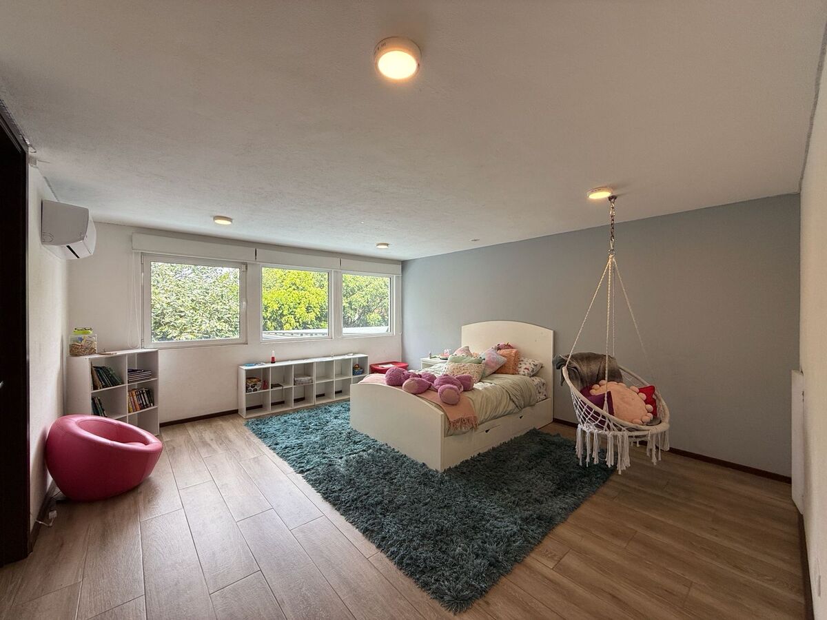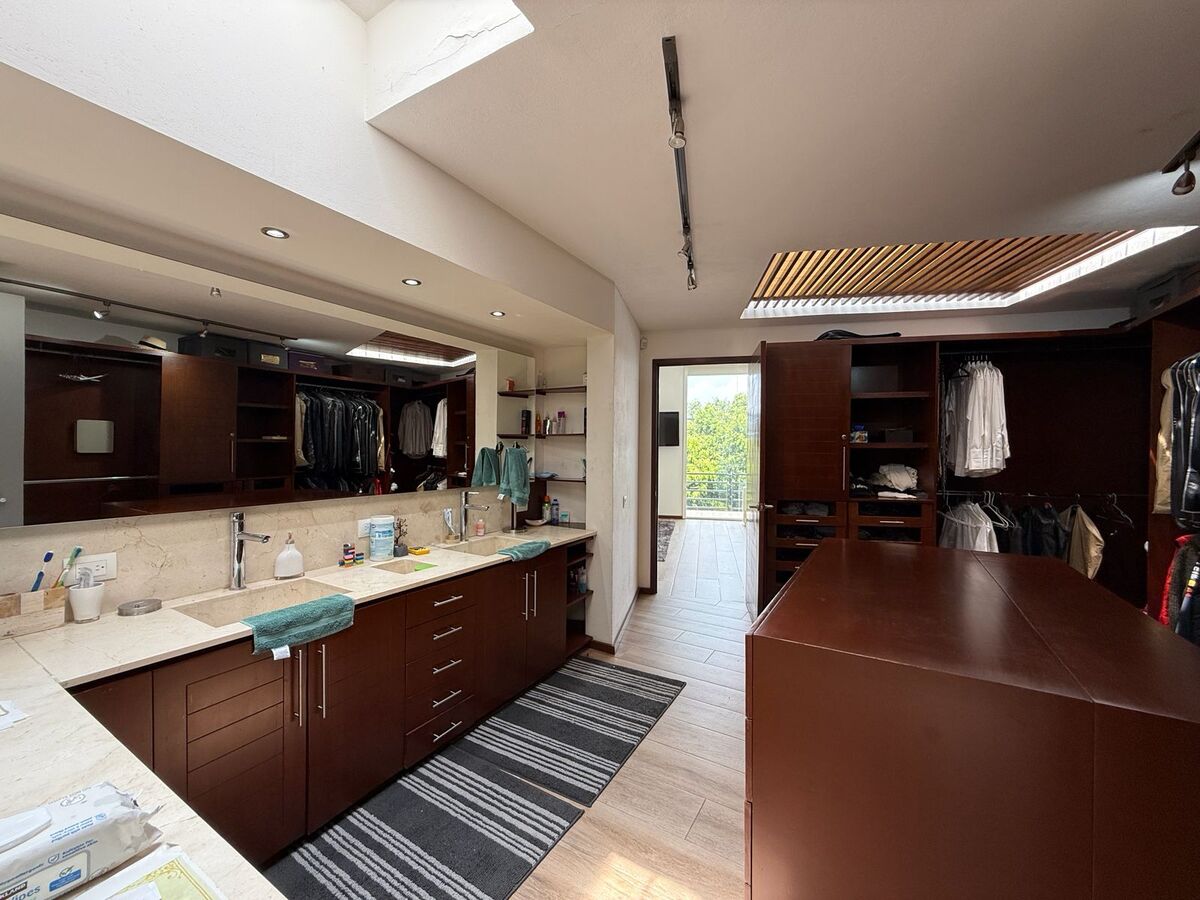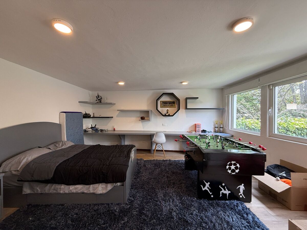 En el piso superior tiene una sala de TV con área de estudio para los niños y otro estudio privado, 3 recámaras cada una con baño propio. La recamara principal tiene gym, sauna y tina tipo jacuzzi.