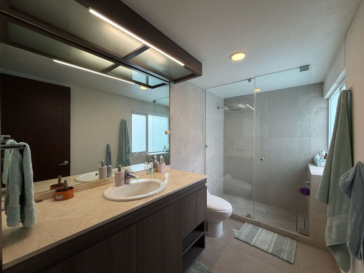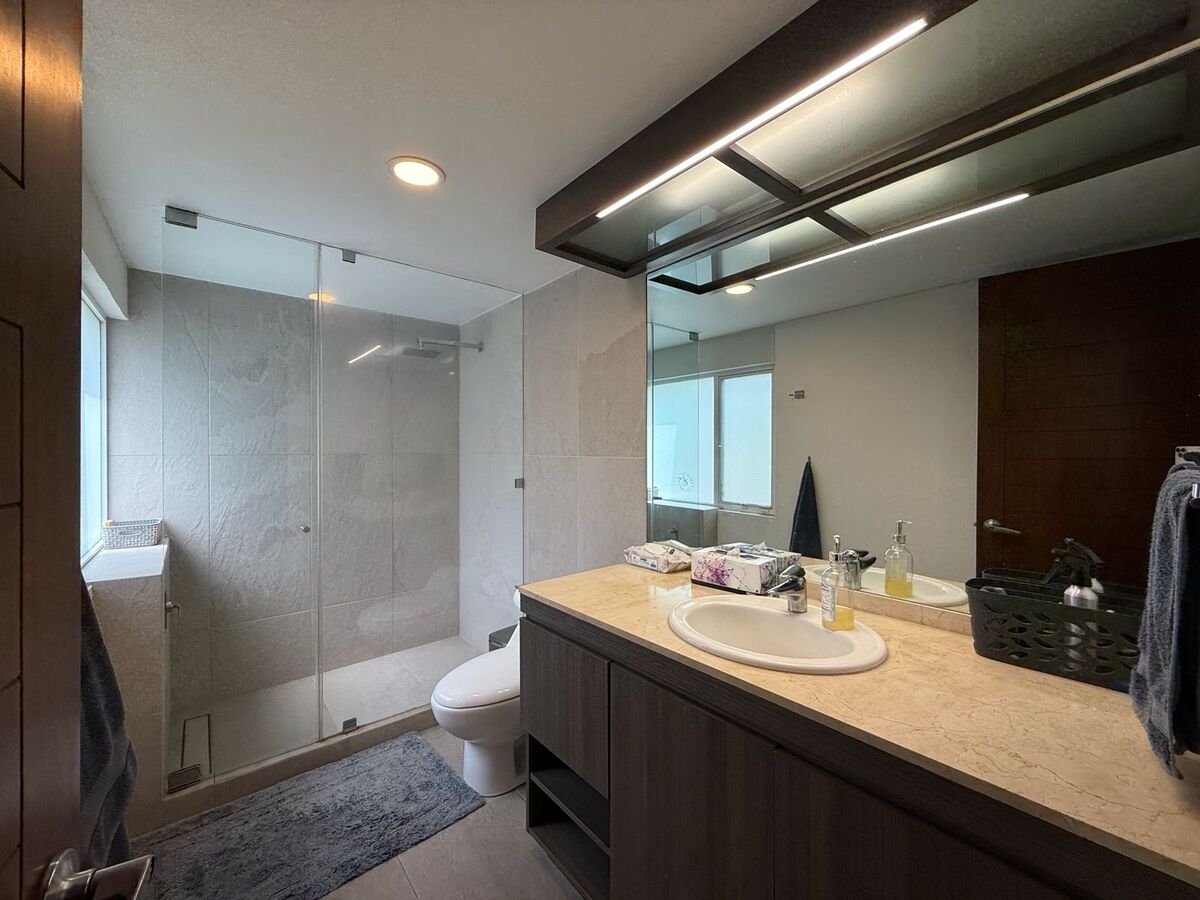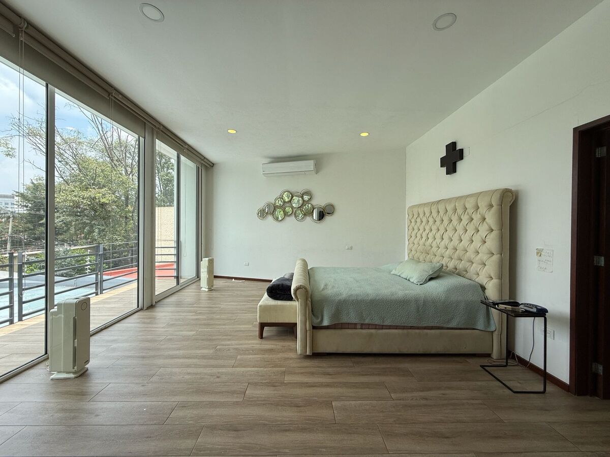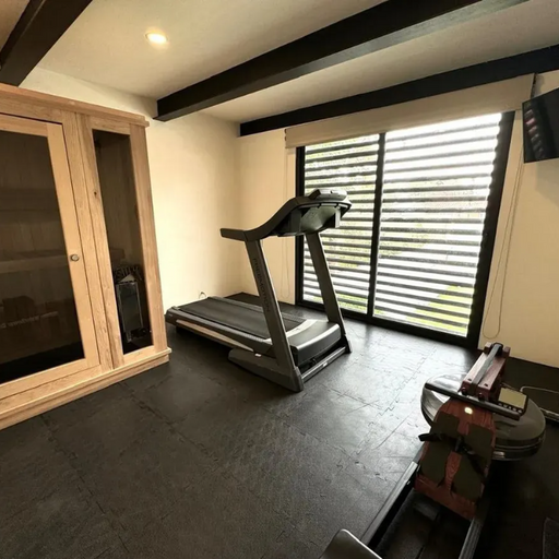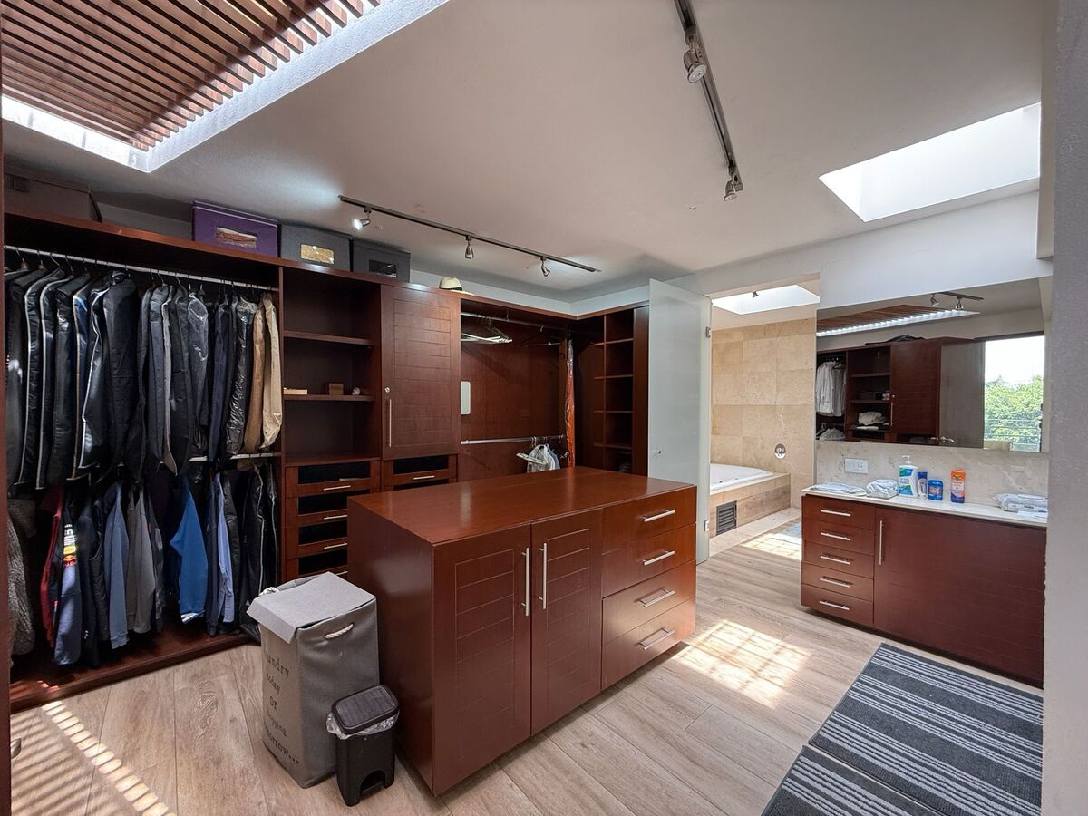 En el piso superior tiene una sala de TV con área de estudio para los niños y otro estudio privado, 3 recámaras cada una con baño propio. La recamara principal tiene gym, sauna y tina tipo jacuzzi.