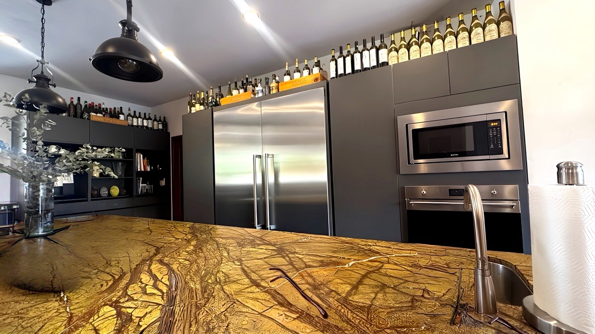 Cochera eléctrica y estacionamiento techado para 4 autos, más otros 3 sin techar.
