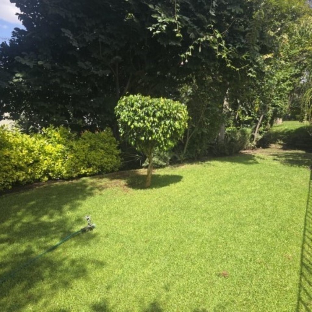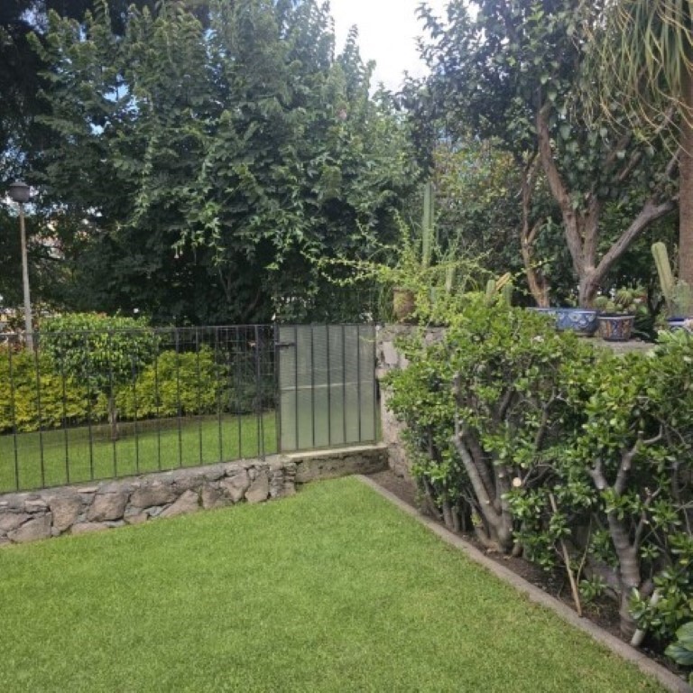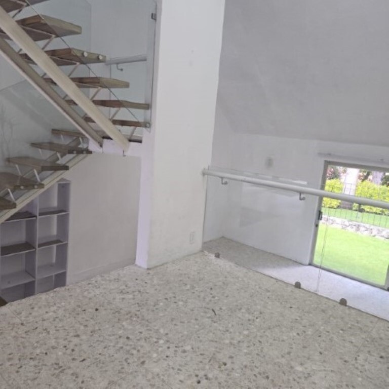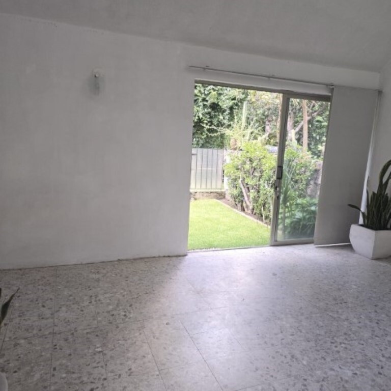 Al bajar las escaleras, encontramos un cancel que comunica al jardín privado muy cómodo para reuniones y una pequeña bodega; además del acceso a la zona comunal que cuenta con áreas verdes.