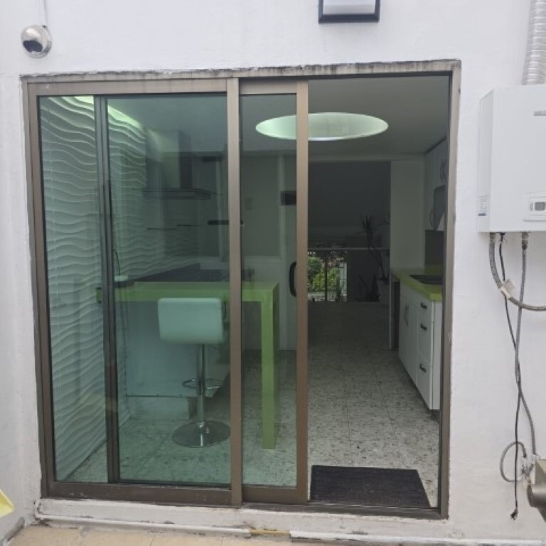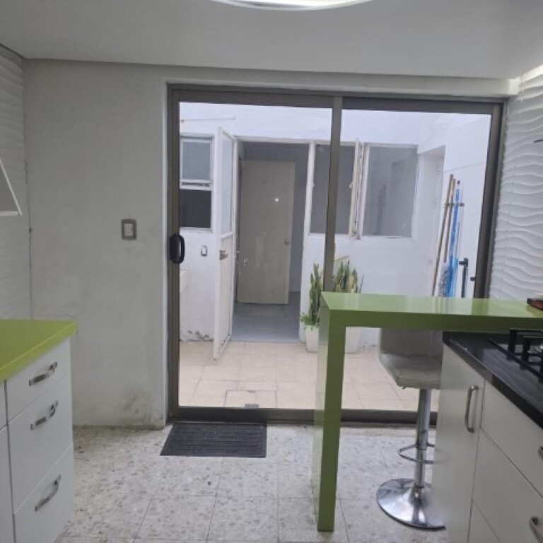 Al bajar las escaleras, cuenta con dos accesos: el principal para entrar a la casa y el alterno, que facilita la entrada a la cocina, al patio de servicio y al cuarto de servicio o lavado.