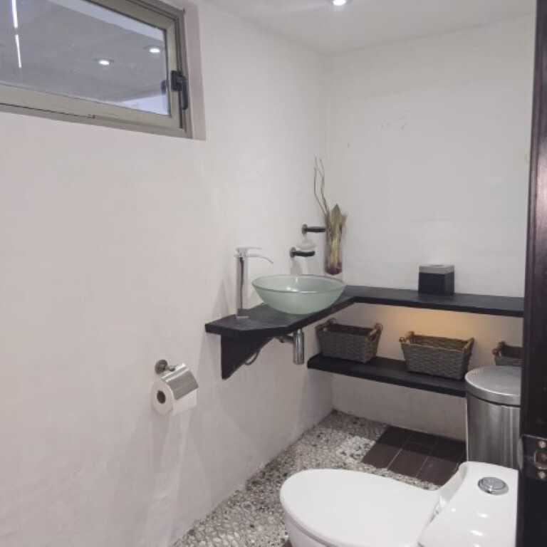 En la planta principal se ubica una habitación sin clóset y medio baño (con opción de convertirlo en baño completo) que se puede utilizar como estudio o como recámara.