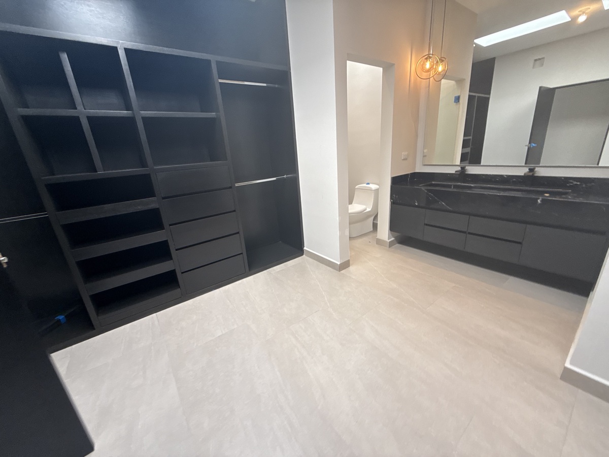 La principal con walking closet de diseño espejo , lava está y baño completo con cancel.