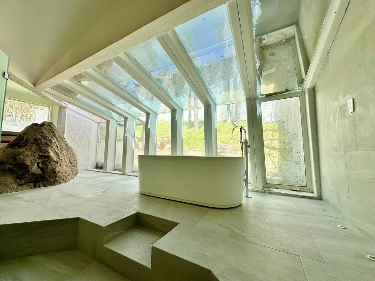 • Quarto principal com vista para o jardim e um banheiro de luxo estilo spa com banheira