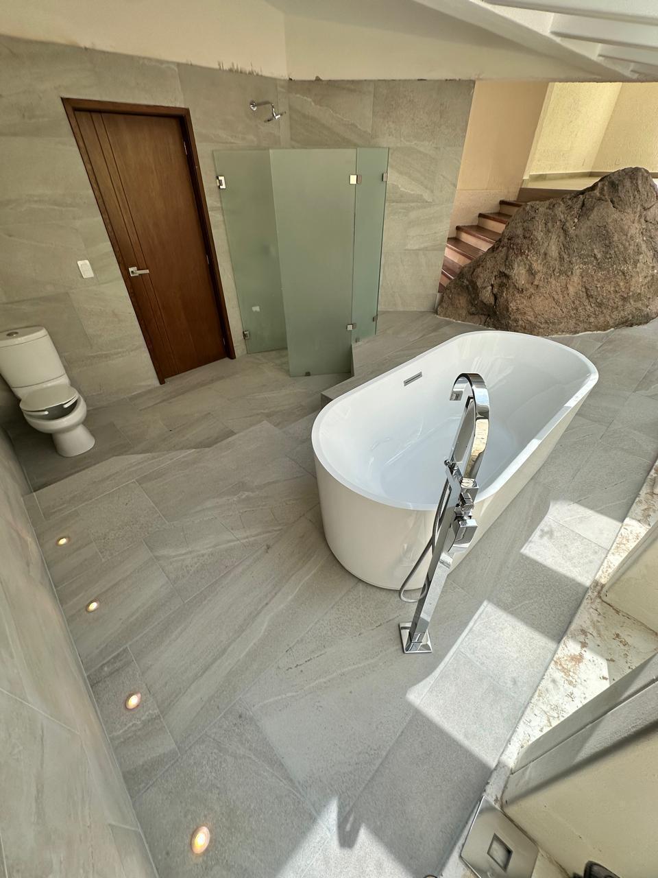 • Recámara principal con vista al jardín y un baño de lujo estilo spa con tina