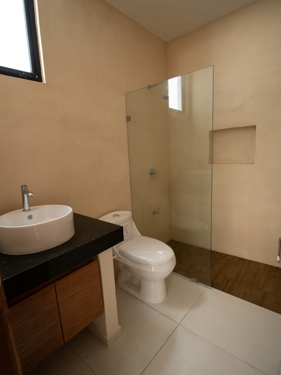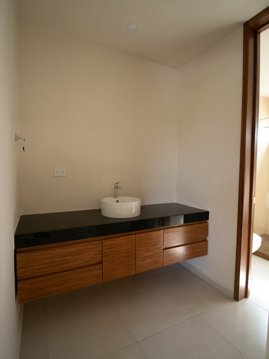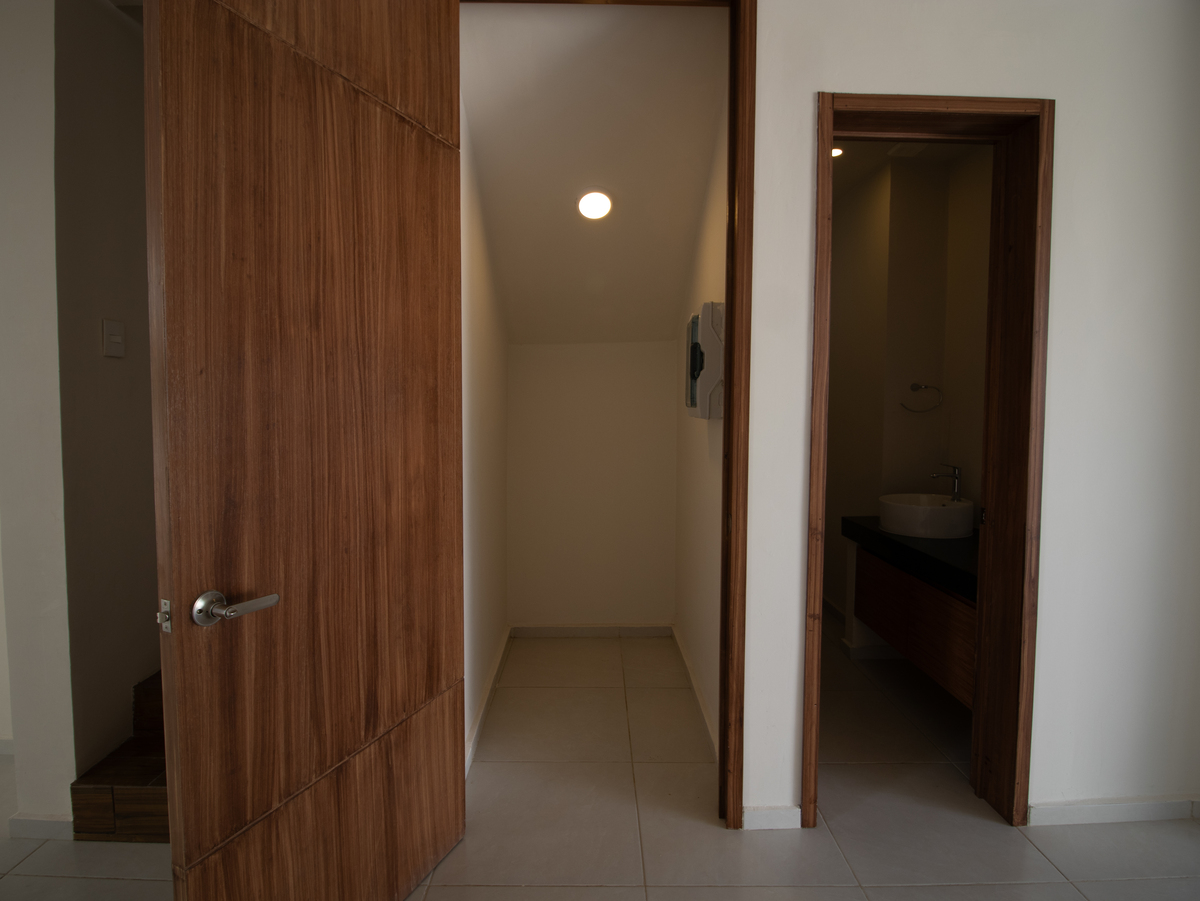 • La tercera recámara, en planta baja con baño completo y closet con cajonera, maletero y tubos para ropa.