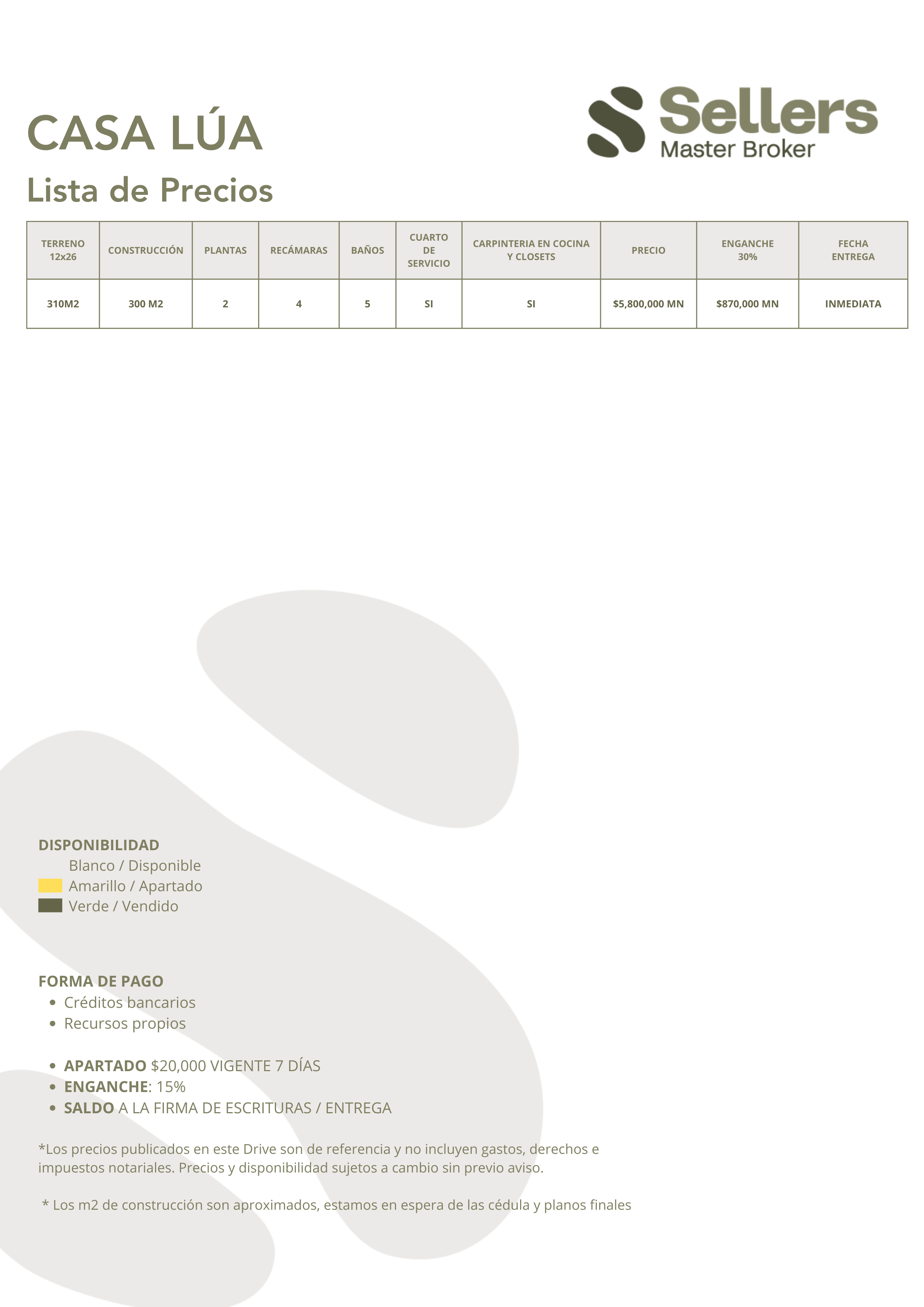 *Disponibilidad y precio sujetos a cambio sin previo aviso. Actualización mensual favor de comprobar con su asesor.