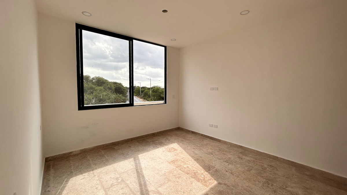 Recámara 2 con meseta para área de closet vestidor (No incluye carpintería), baño completo y área de Jardinera.