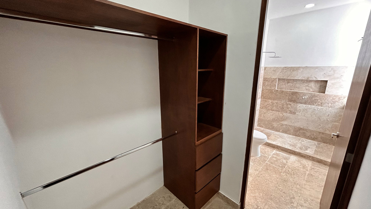 Recámara principal con área de clóset vestidor (No incluye carpintería), baño completo y balcón.
