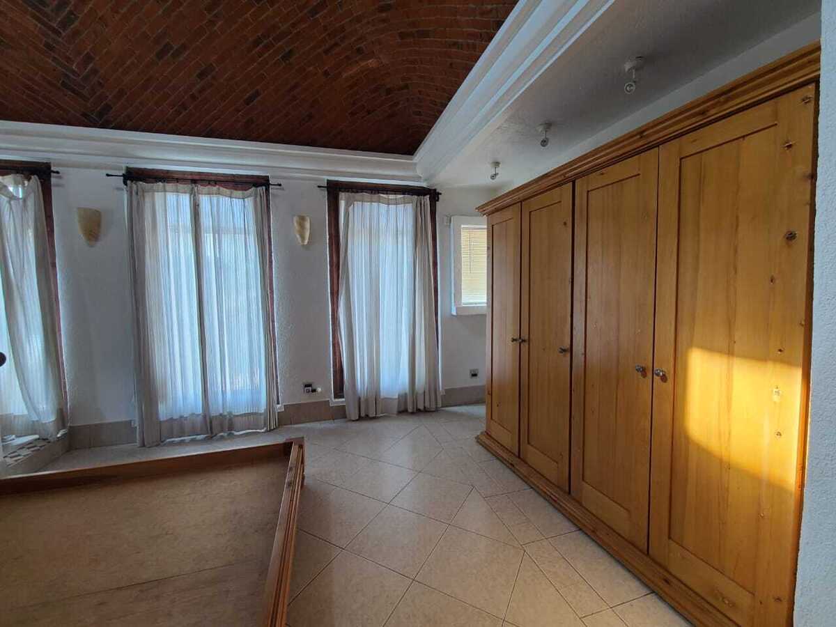 O porão é pensado para uso prático, ideal para armazenar motocicletas ou como espaço para supermercado. No andar superior, encontram-se três quartos: o principal, com um amplo closet ao redor e um banheiro privativo com chuveiro separado, além de uma cúpula central que traz luz natural e amplitude ao quarto. Um dos quartos secundários tem mezanino e banheiro próprio, enquanto o terceiro quarto também conta com banheiro completo e um terraço privado.