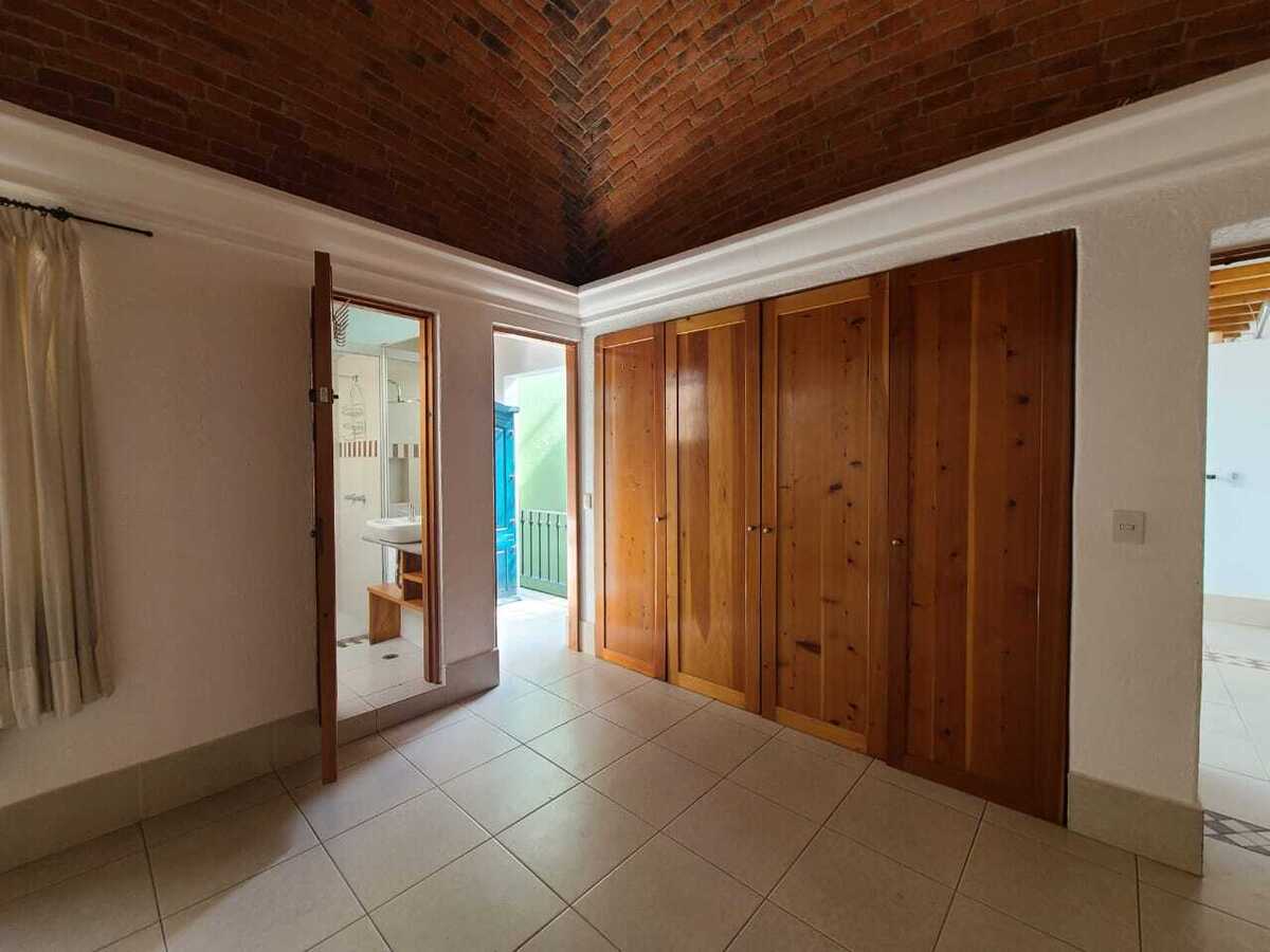 El sótano está pensado para un uso práctico, ideal para almacenar motocicletas o como espacio para supermercado. En la planta alta, se encuentran tres recámaras: la principal, con un amplio vestidor que la rodea y un baño en suite con regadera separada, además de una cúpula central que aporta luz natural y amplitud a la habitación. Una de las recámaras secundarias tiene tapanco y baño propio, mientras que la tercera recámara también cuenta con baño completo y una terraza privada.