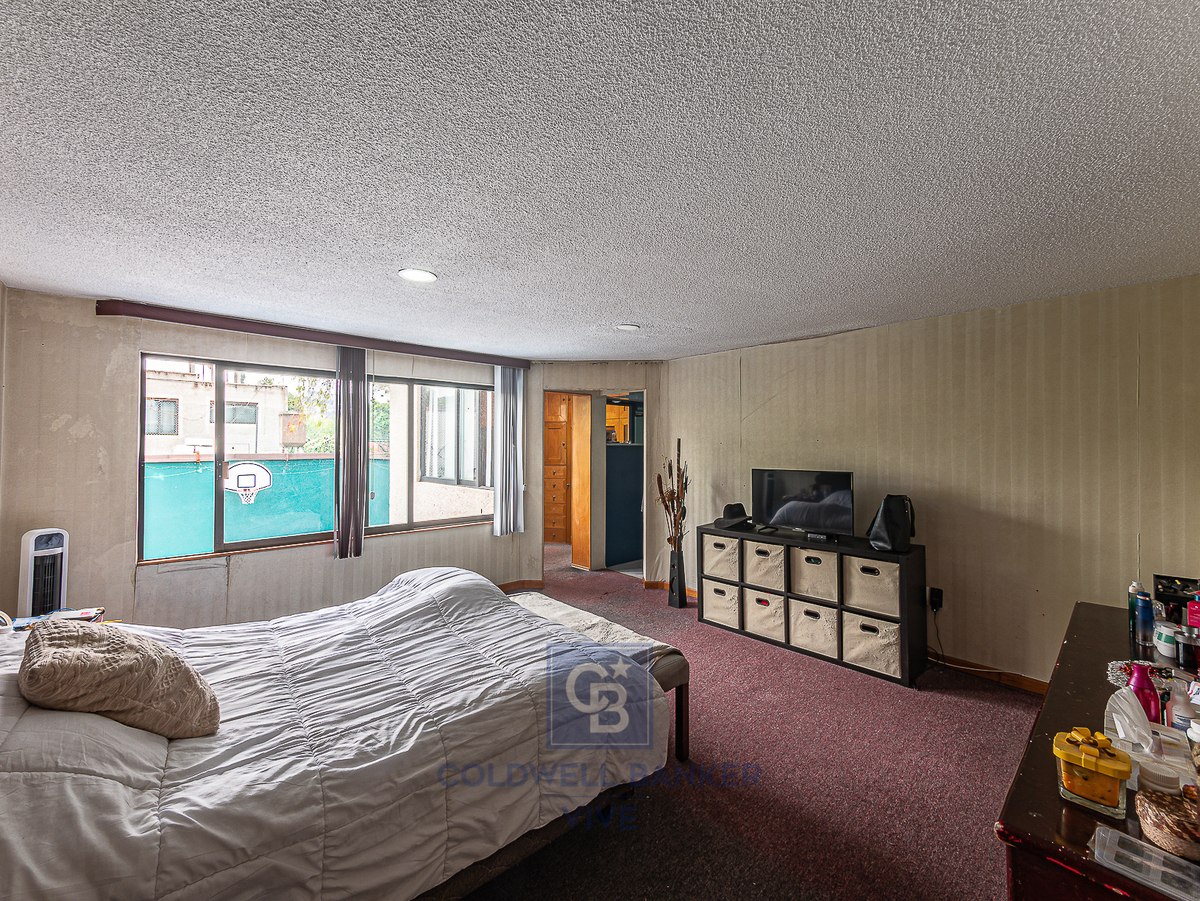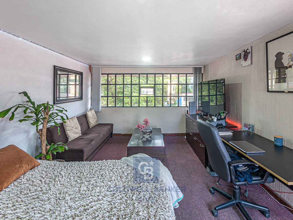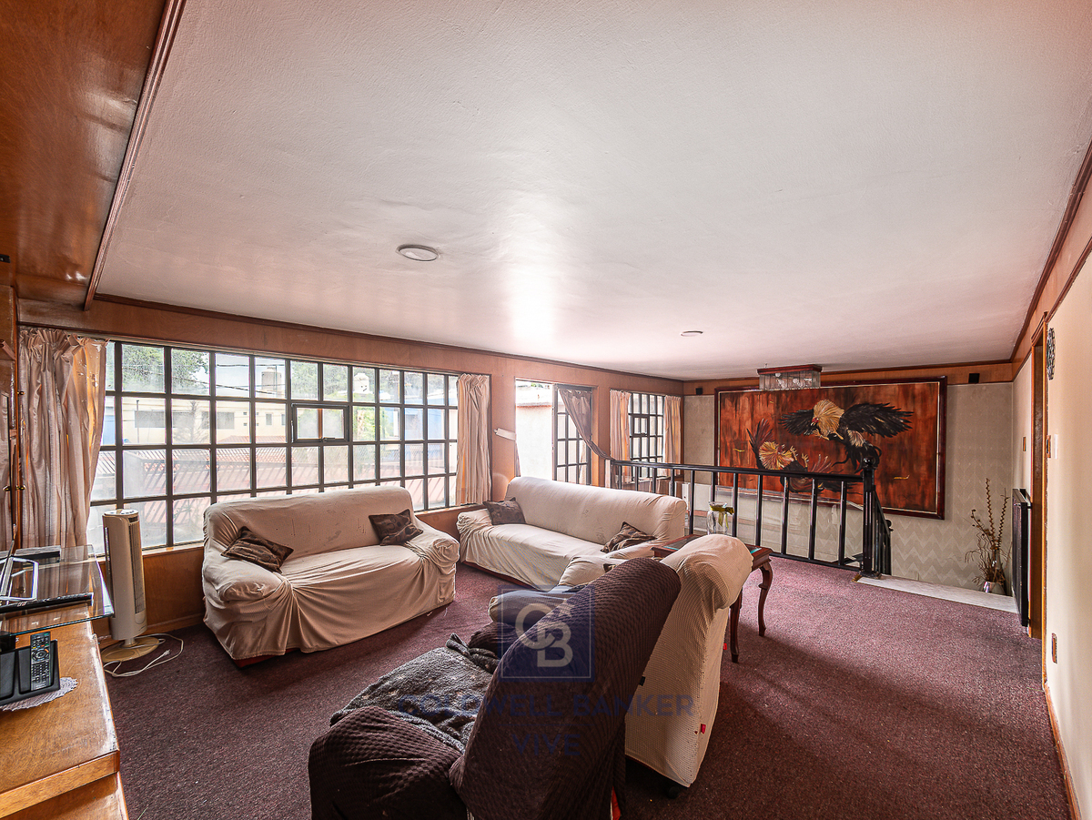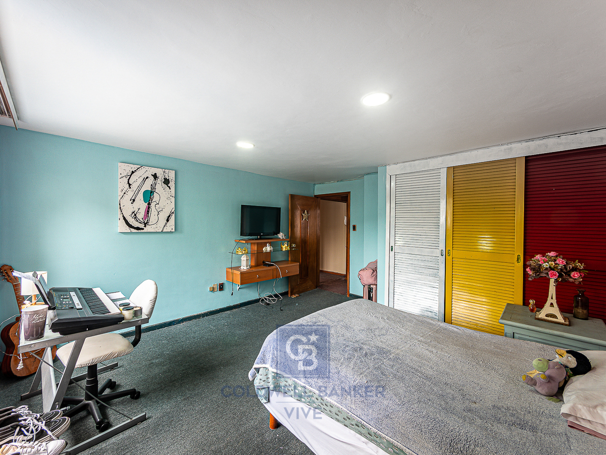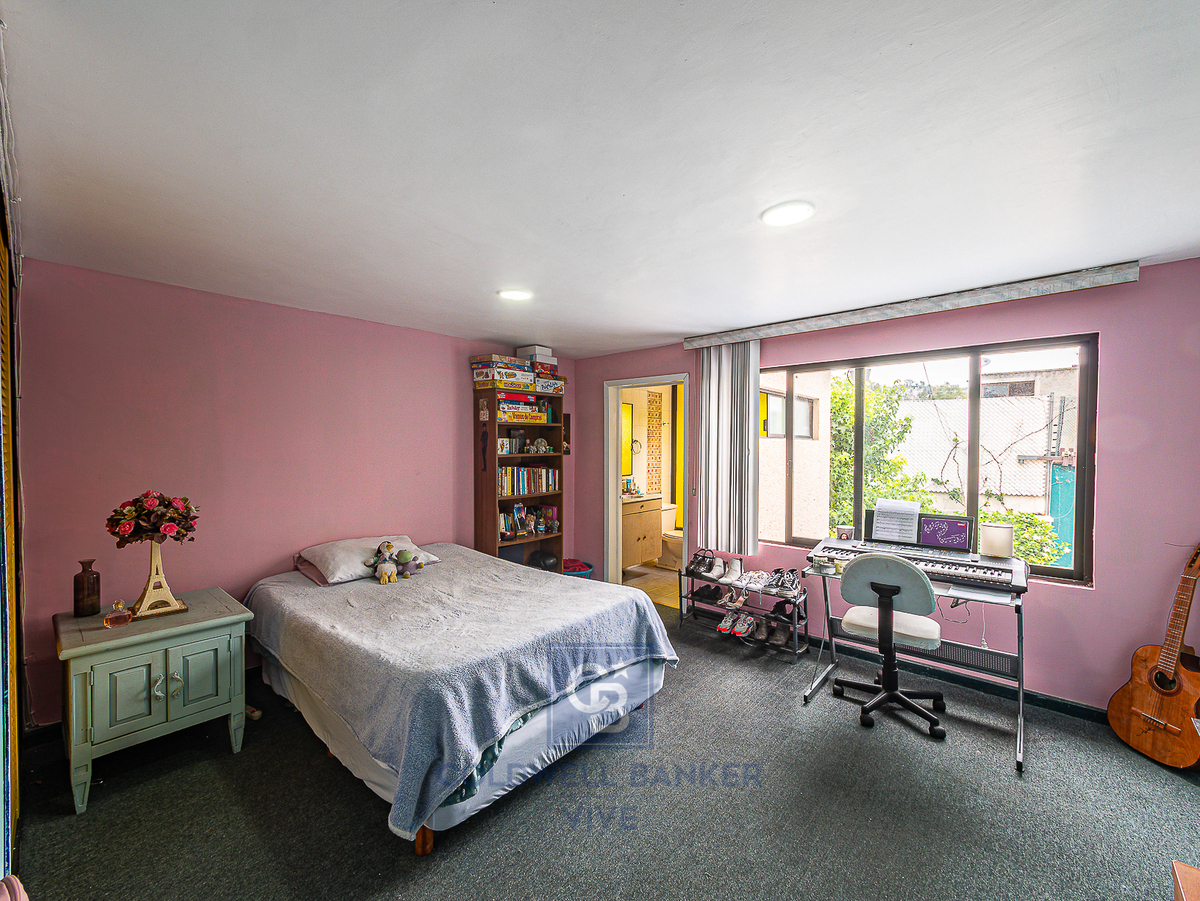 En el primer piso cuenta con una sala de televisión con terraza y 5 recamaras con baño completo, tres de ellas tienen vestidor. El área de lavado esta ubicada en la azotea junto con el área de tendido. La casa cuenta con un pasillo lateral que permite el acceso al jardín, una bodega y medio baño más; el estacionamiento es techado para 3 autos grandes o 5 medianos y cuanta con una cisterna actualmente deshabilitada.