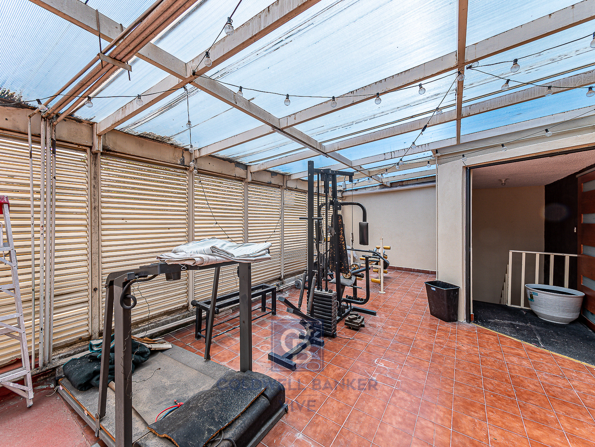 No primeiro andar, há uma sala de televisão com terraço e 5 quartos com banheiros completos, três deles têm closet. A área de lavanderia está localizada no telhado junto com a área de secagem. A casa conta com um corredor lateral que permite o acesso ao jardim, um depósito e mais um lavabo; o estacionamento é coberto para 3 carros grandes ou 5 médios e possui uma cisterna atualmente desativada.