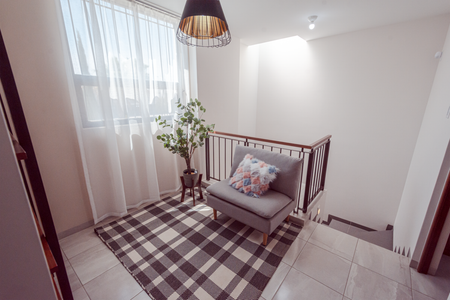 Andar superior: 3 quartos, 2 deles com armário e o terceiro equipado com closet e 1 banheiro completo.