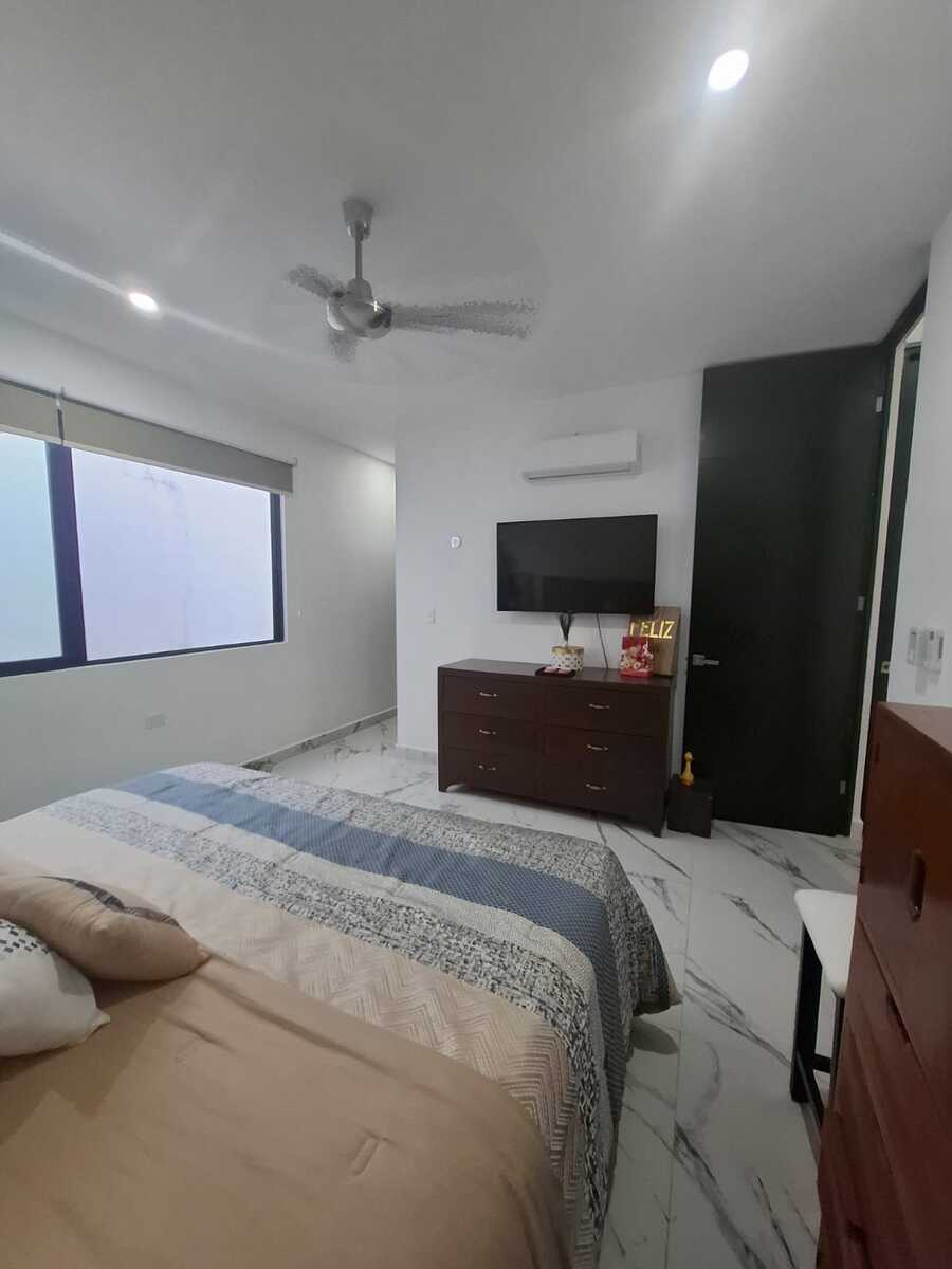 2 recámaras secundarias, cada una con baño, A/A inverter, ventilador