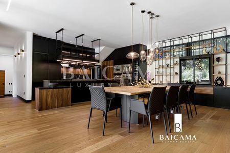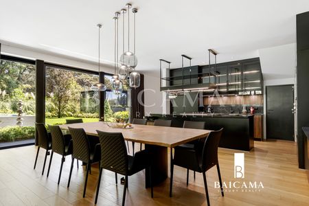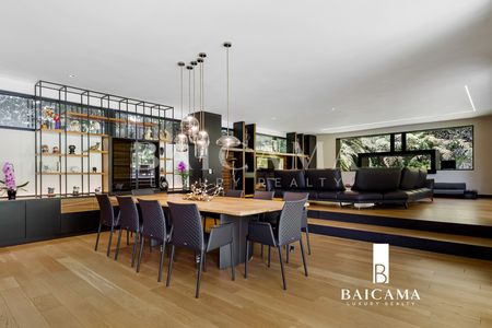 La residencia destaca por sus espacios amplios y luminosos. aprovechando la luz natural a través de grandes ventanales con dos tipos de cristales: DUO VENT en las ventanas orientadas al norte y ventanas con película para mitigar los rayos UV en las orientadas al sur. Esto proporciona una eficiencia térmica y acústica excelente. Los techos a dos aguas en la casa principal y a un agua en la casa secundaria aportan un toque distintivo y moderno. Las vistas panorámicas al jardín y al campo de golf adyacente son impresionantes desde todos los ángulos