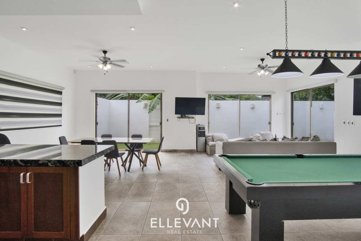 - Cocina integral con barra de granito santa Cecilia, y equipada con horno, estufa, campana y lava vajillas.