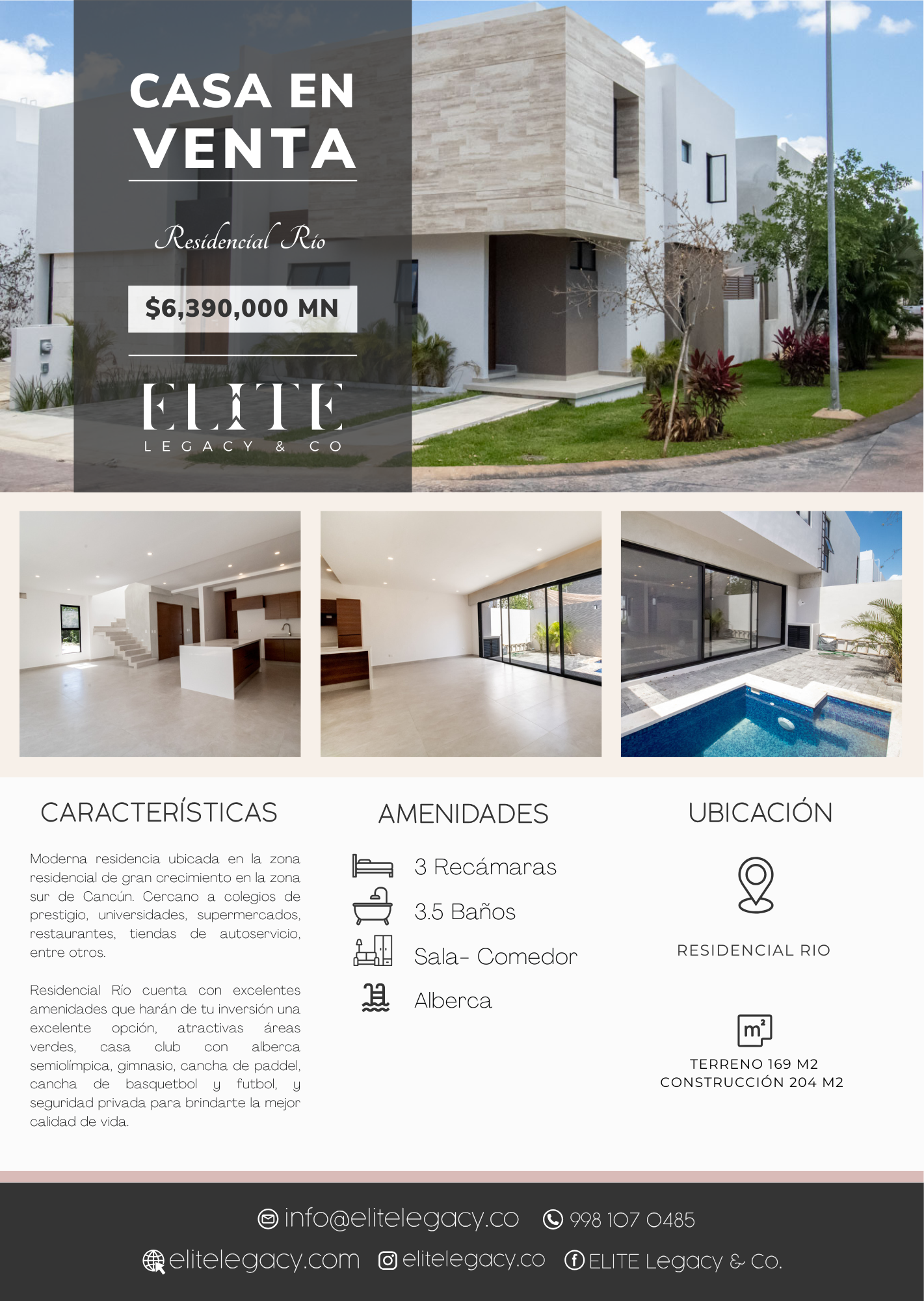 Residencial Río cuenta con excelentes amenidades que harán de tu inversión una excelente opción, atractivas áreas verdes, casa club con alberca semiolímpica, gimnasio, cancha de pádel, cancha de basquetbol y futbol, y seguridad privada para brindarte la mejor calidad de vida.
