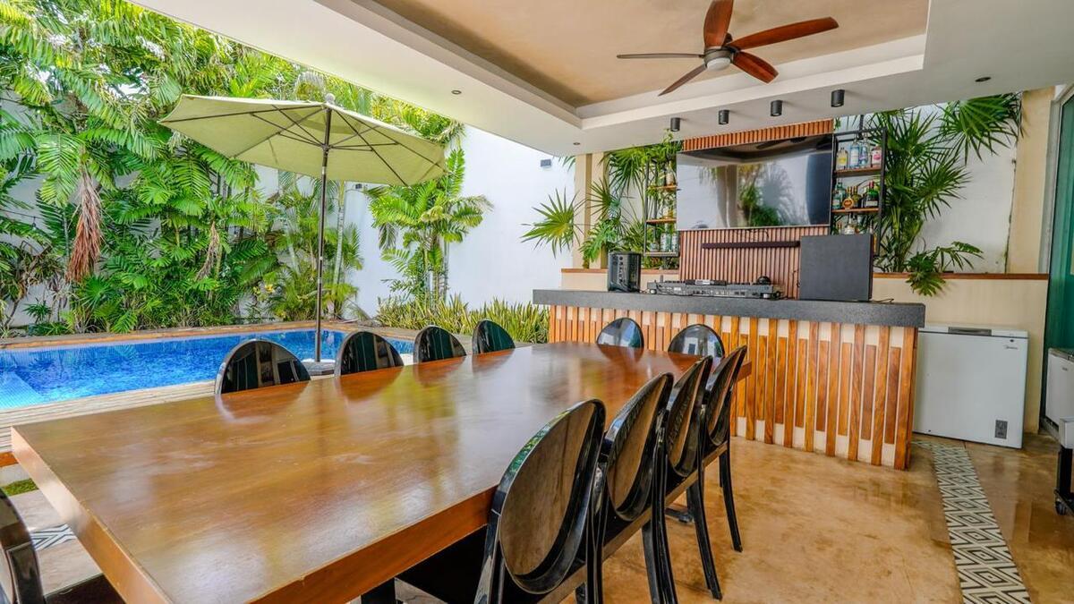 Esta moderna residencia en esquina ofrece 3 recámaras, 3.5 baños, terraza techada con bar, piscina privada y family room.