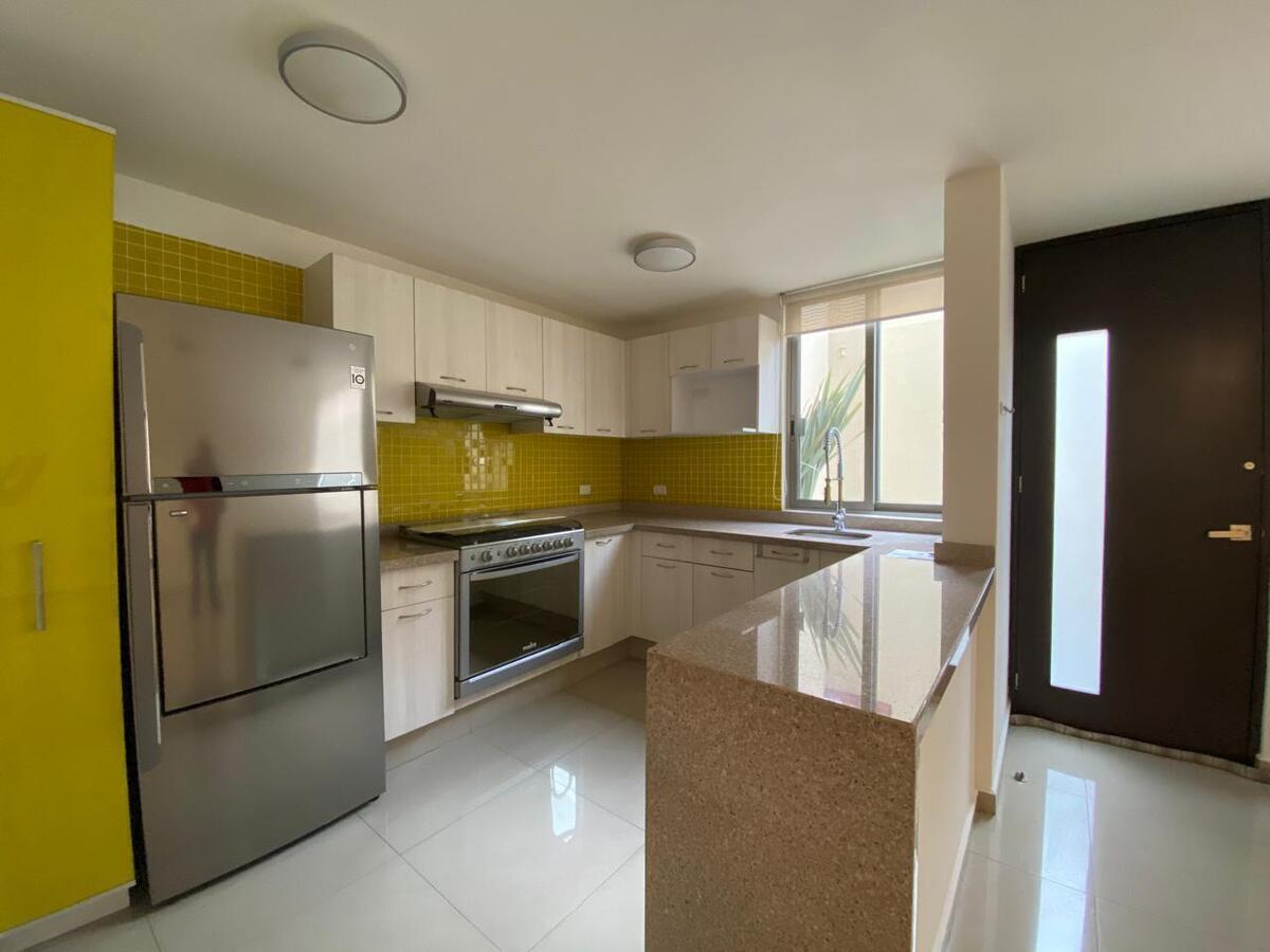 Planta baja : Sala-Comedor, Cocina abierta totalmente equipada con barra de granito y medio baño de visitas.