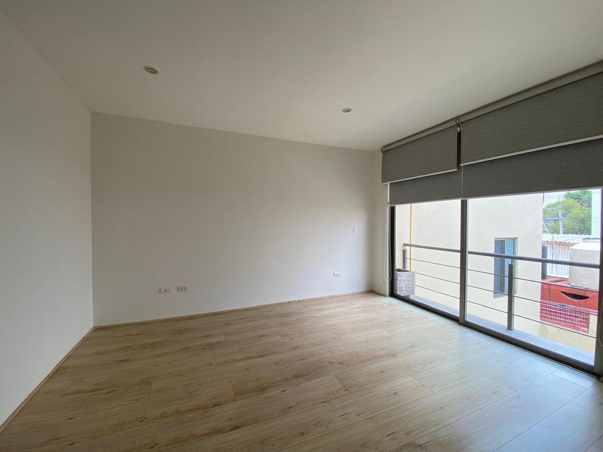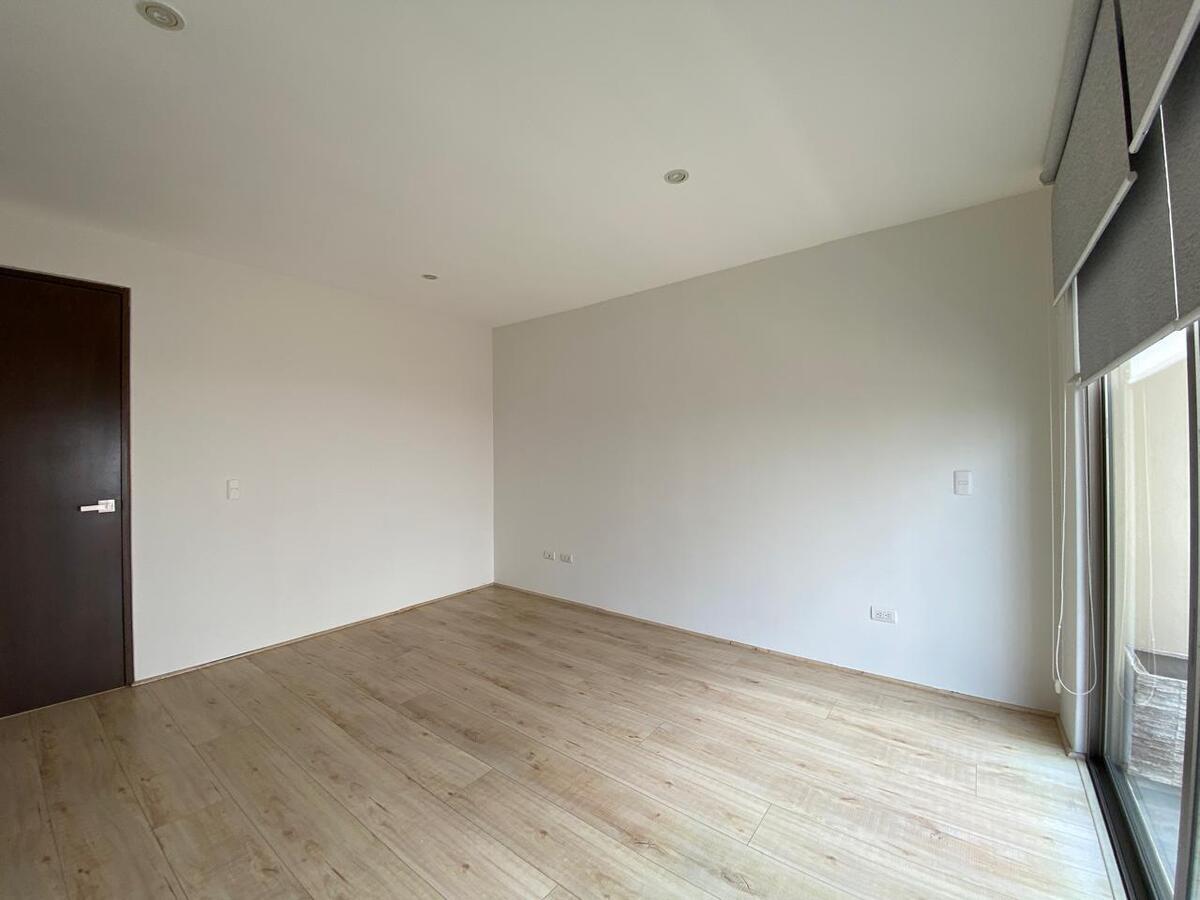 Segundo nivel: Recámara principal muy amplia con balcón y dos walking clóset, uno de los cuales está integrado a la recámara y el segundo se encuentra en el pasillo, baño completo con ventilación natural y clóset de blancos.