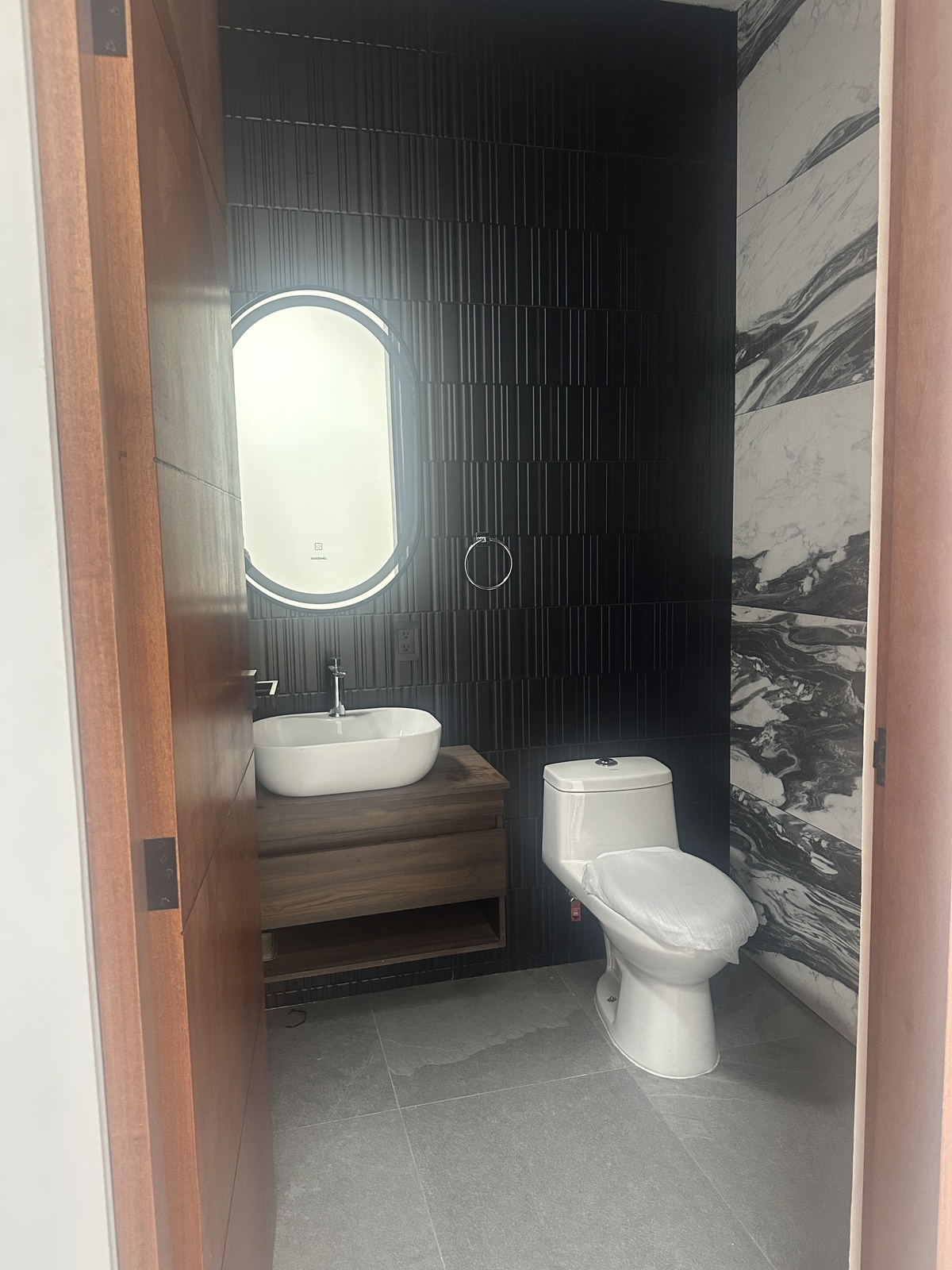 Planta Baja: 1/2 medio baño. Sala, Cocina y Comedor con espacio libre. Cocina Integral con Isla con cubierta de granito color negro natural. T