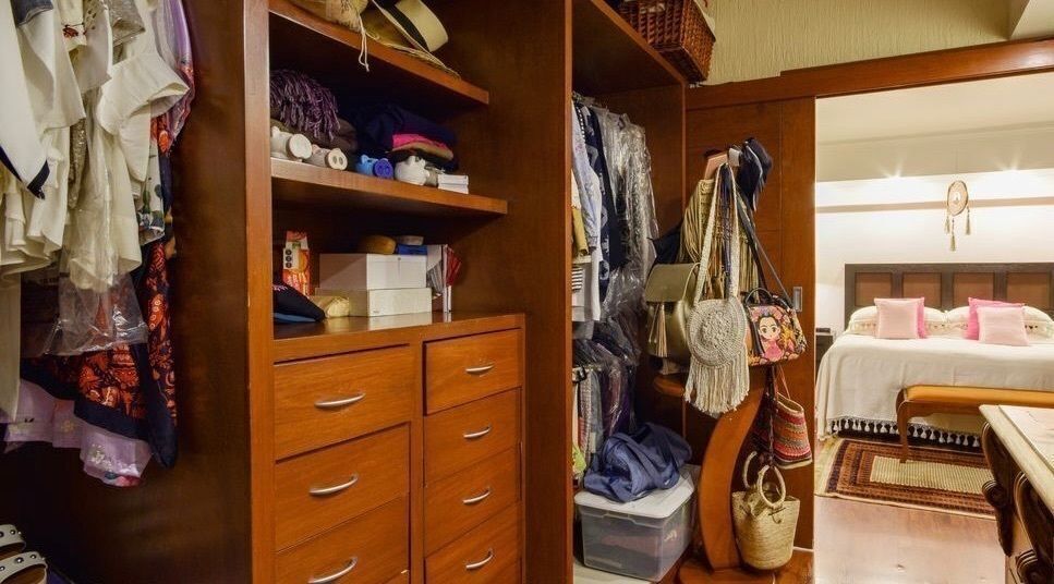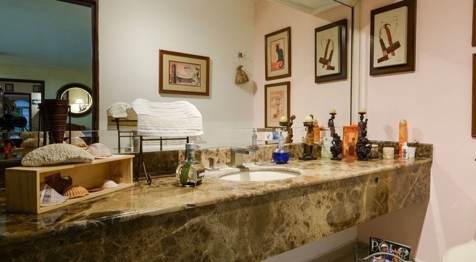 - Residência em um único nível com 4 quartos, cada um com banheiro e closet