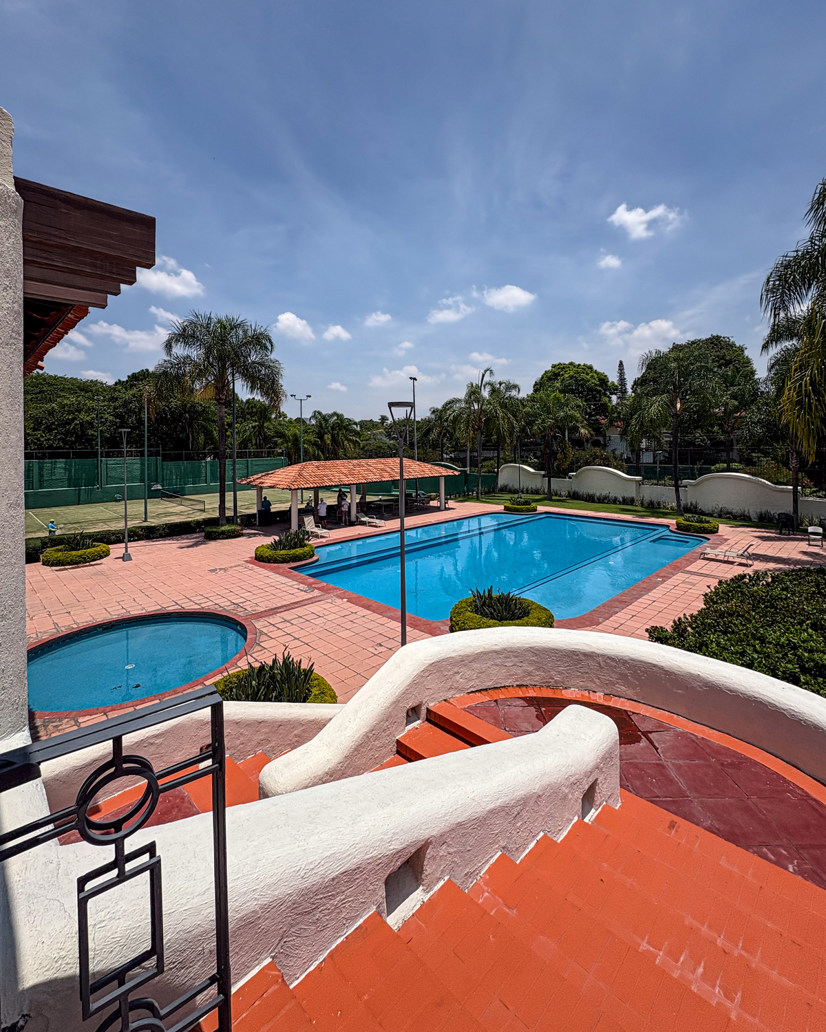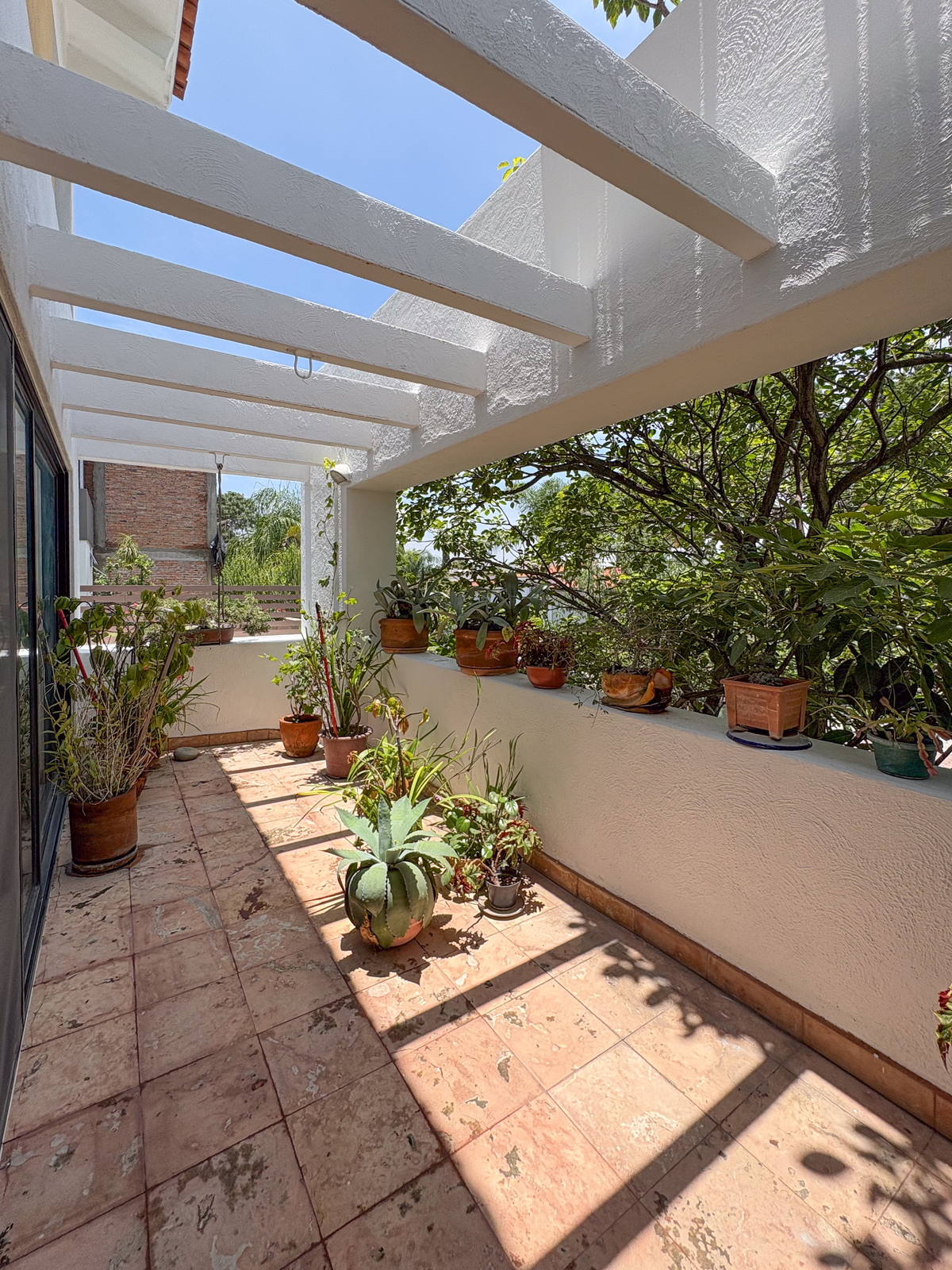 Linda residência de traços e cores barraganezcas, com amplos espaços, povoada de árvores frutais e outras espécies, e de plantas ornamentais que florescem o ano todo. Conta ainda com uma área ajardinada com 2 varandas que permitem desfrutar da vista para a Floresta de Los Colomos e de belos pores do sol. Localização privilegiada com a melhor área arborizada da cidade, na zona de Los Colomos e na Floresta Pedagógica da Água, com 2 importantes centros comerciais próximos: Plaza Patria e Plaza Andares. O condomínio possui Casa Club com salão para eventos, sala de reuniões, 2 quadras de tênis, piscina e academia.
