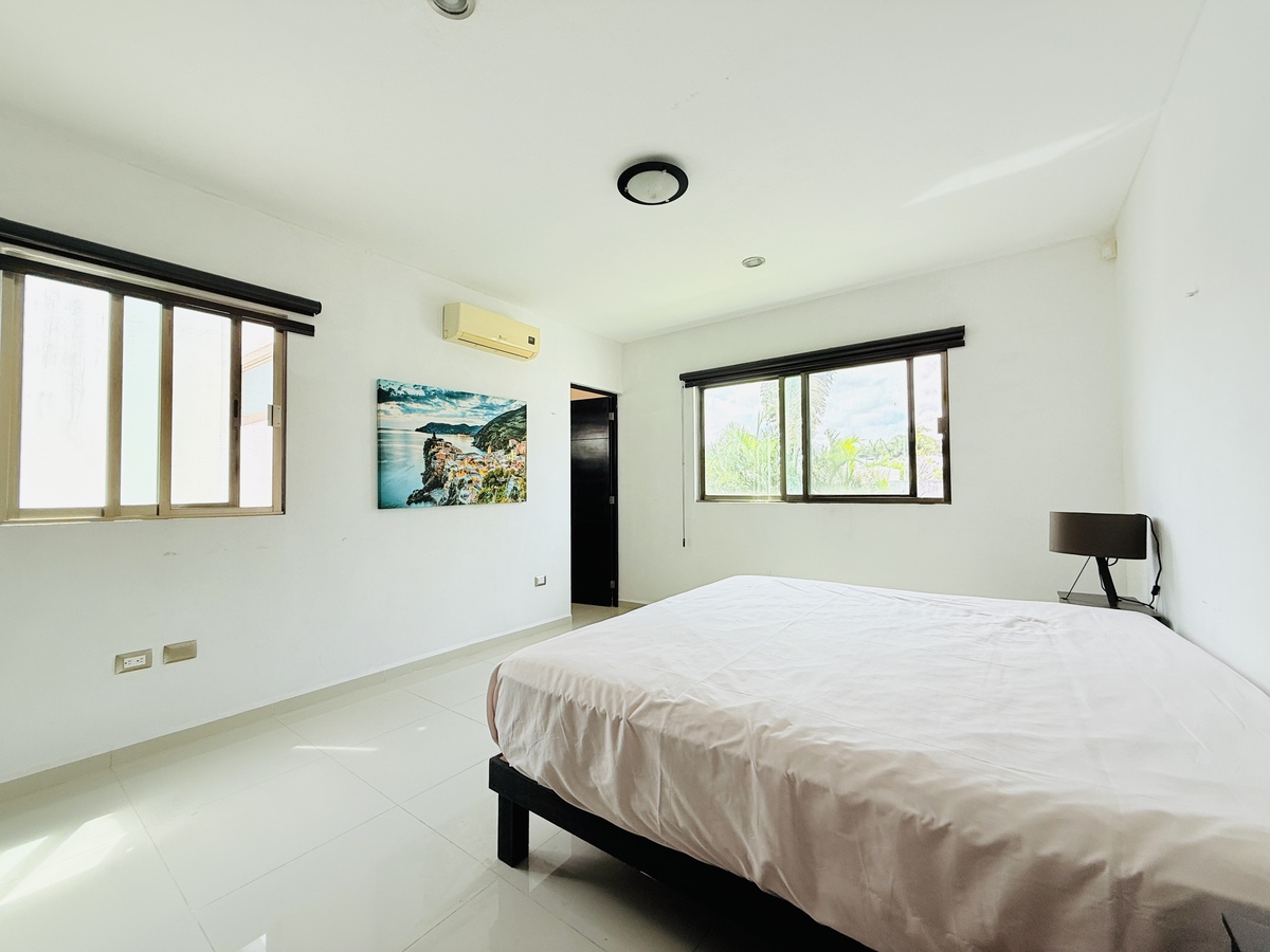 Recámara principal con clóset vestidor, baño completo y balcón. Recámara secundaria con baño completo y clóset. Sala de TV con balcón.