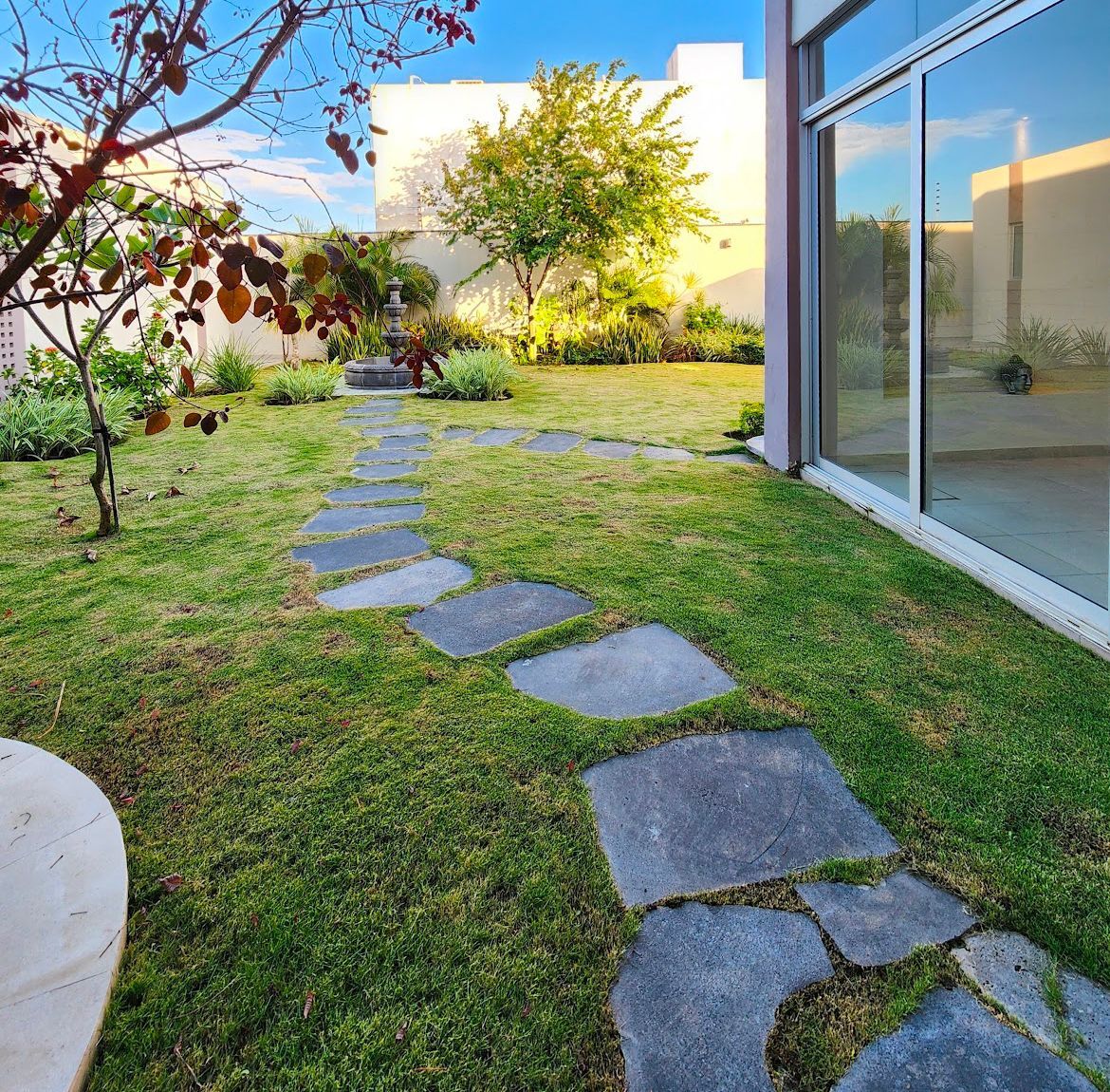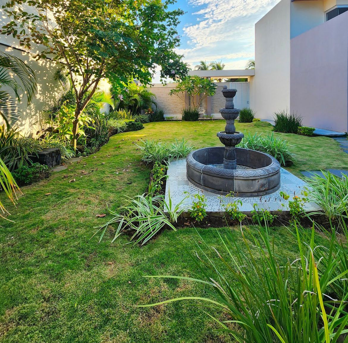 * Jardín amplio de aproximadamente 200 m² con fuente.