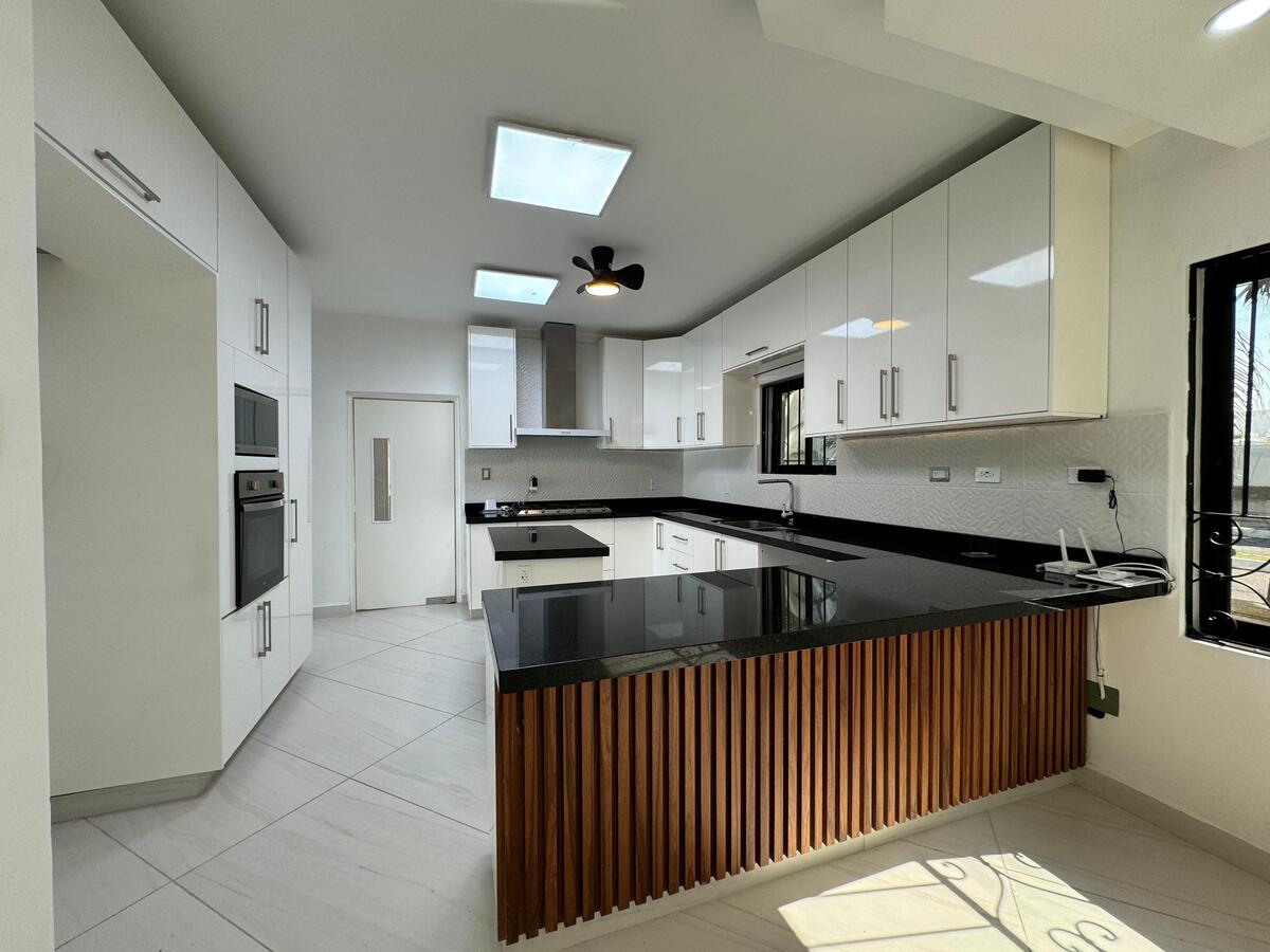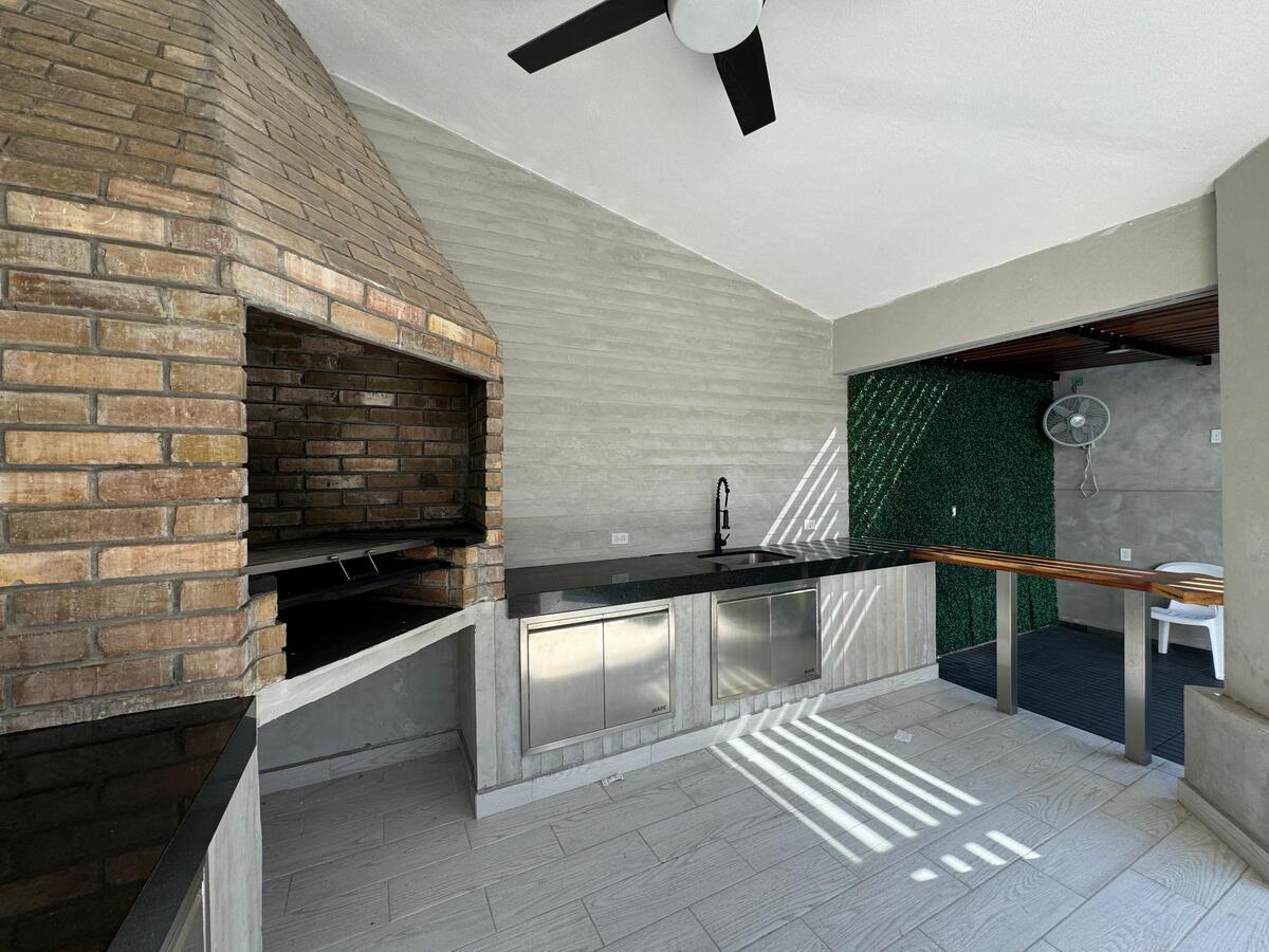 - Cocina integral con isla, parrilla, campana, torre de hornos, alacena y preparación para lavavajillas.