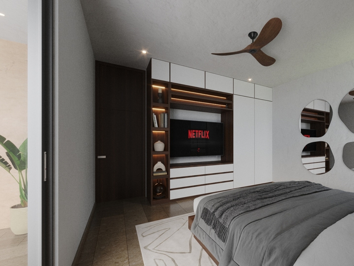 Recamara secundaria con baño vestidor y balcón vista al jardín
