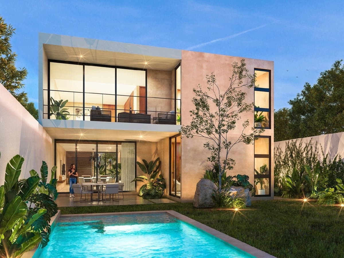 Quarto secundário com banheiro e closet.Casa Nueva de dos niveles ubicada en Dzitya