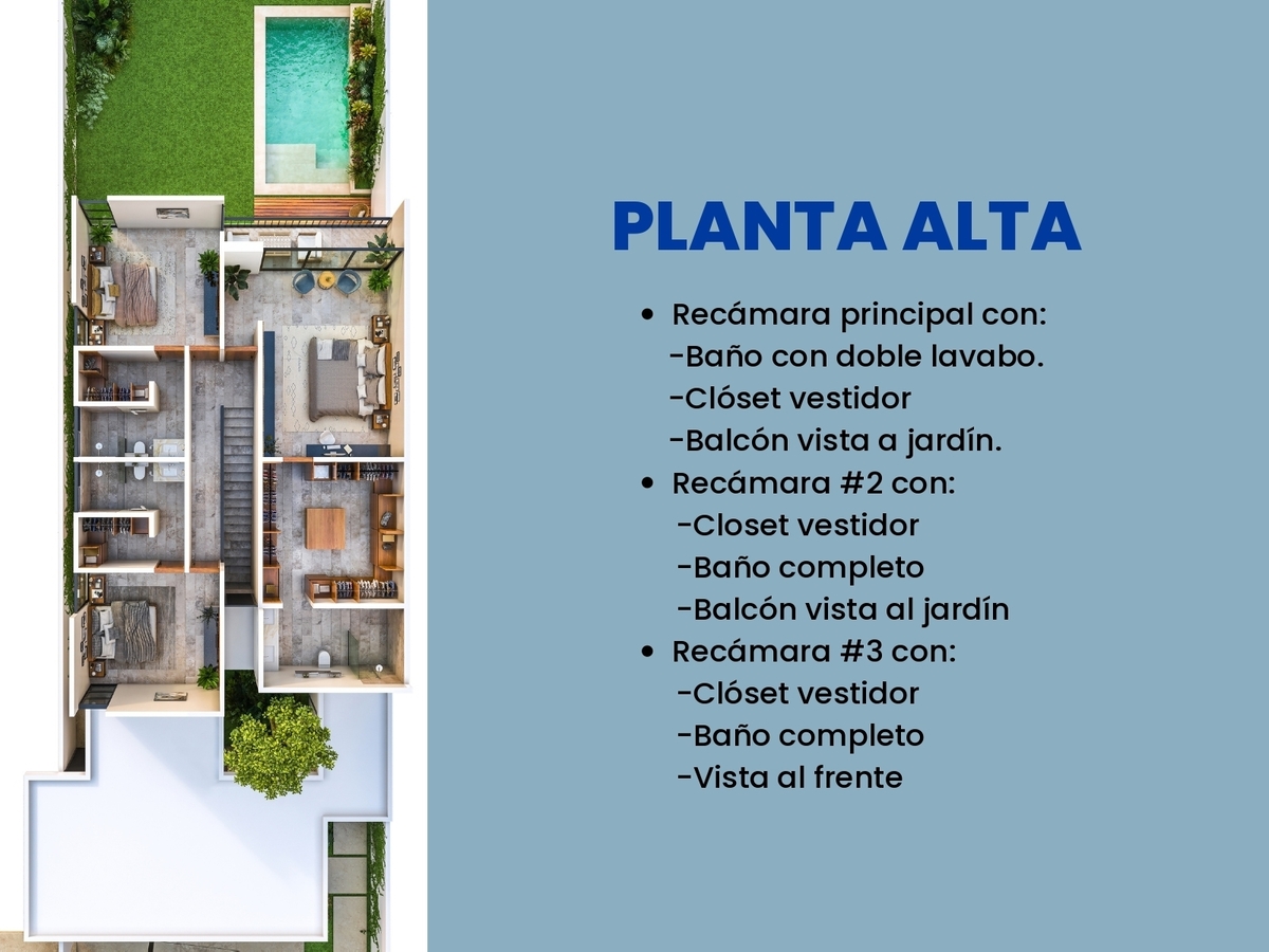 Recamara principal con baño vestidor y balcón con vista al jardín